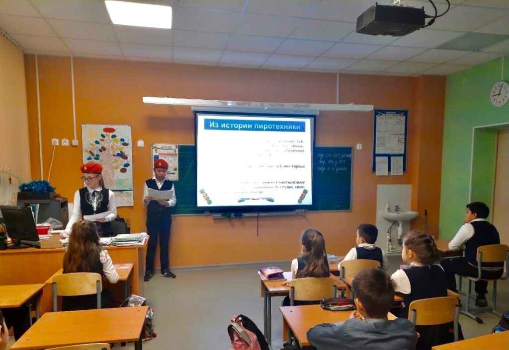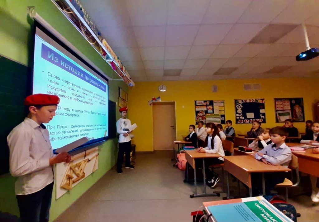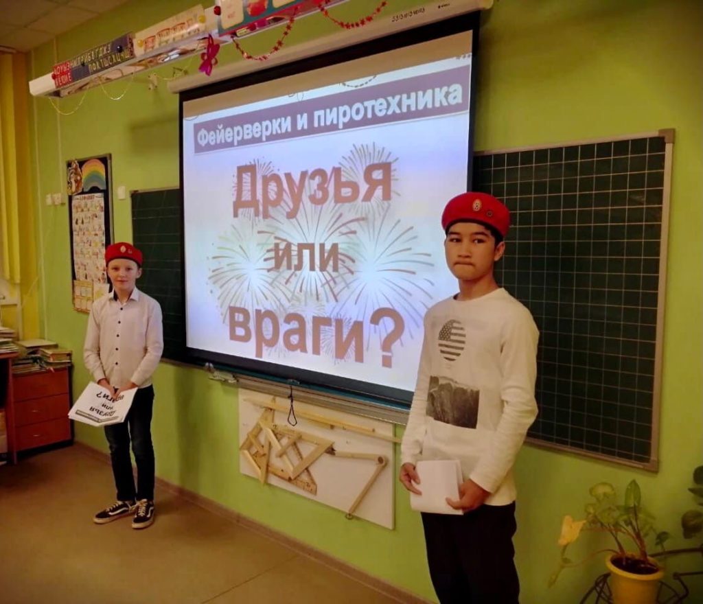 Игры, забавы вокруг зеленой красавицы надолго остаются в памяти детей. Мы искренне надеемся, что они будут радостными. Однако, чтобы их ничто не омрачило наши ДЮПовцы, обучающиеся 6 класса МКОУ «Красноборская СОШ», провели для ребят начальной школы тематический классный час, на котором рассказали о правилах применения пиротехнических изделий.
