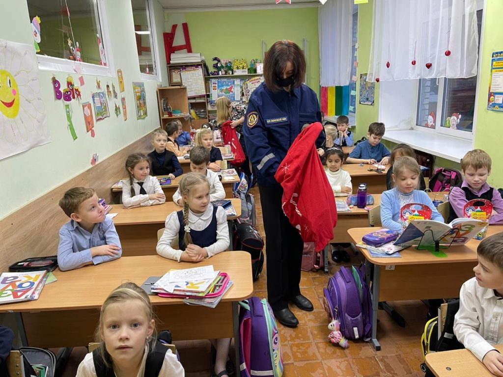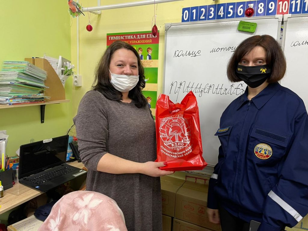 В преддверии нового года Ломоносовское местное отделение ВДПО продолжает поздравлять с наступающими праздниками учащихся школ Ломоносовского района. Так 25 декабря 2020 года работник СОД Баранова Ксения поздравила учеников первого класса одной из школ Ломоносовского района Ленинградской области.