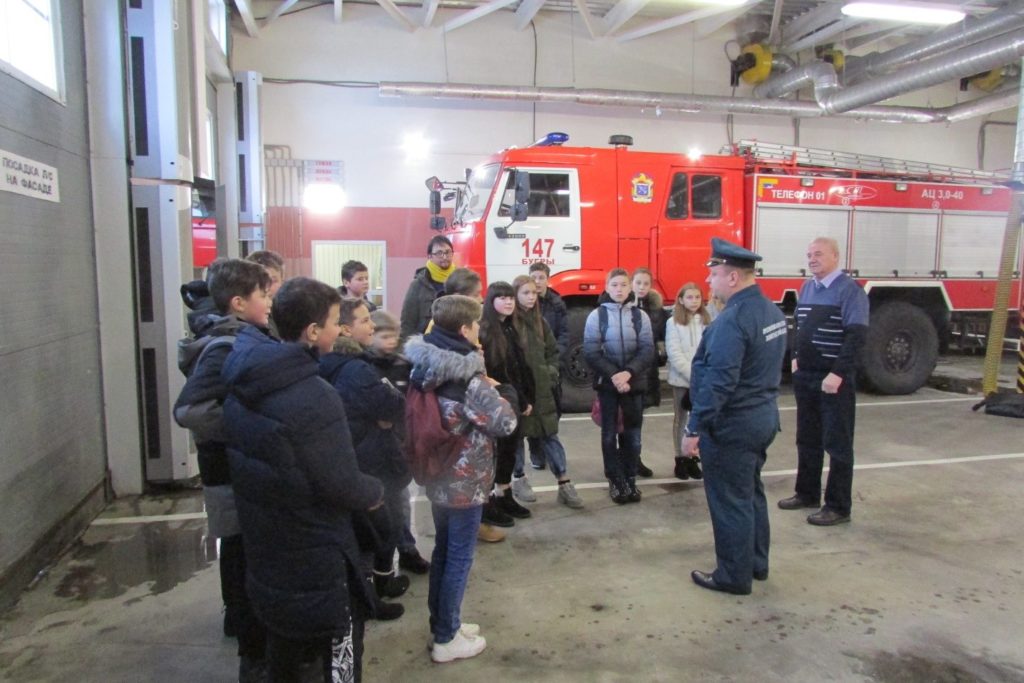 Заместитель начальника части Филиппов Михаил Андреевич показал им боевую технику и пожарно-техническое вооружение, провел по всем помещениям части и рассказал, как живут и работают пожарные.