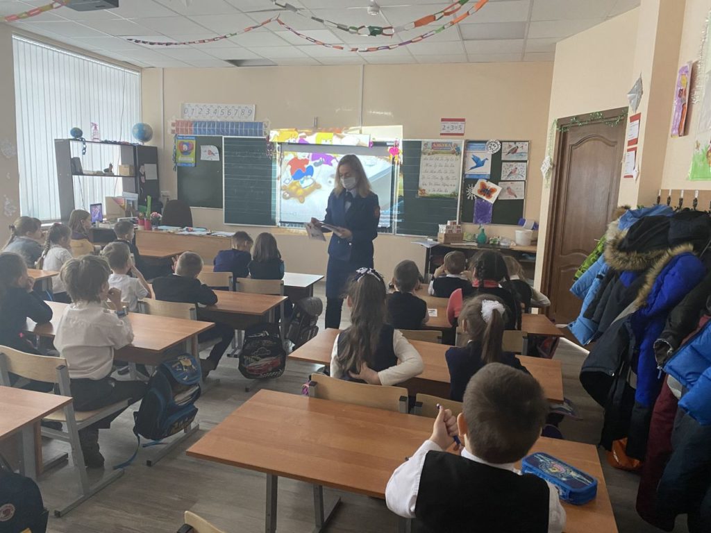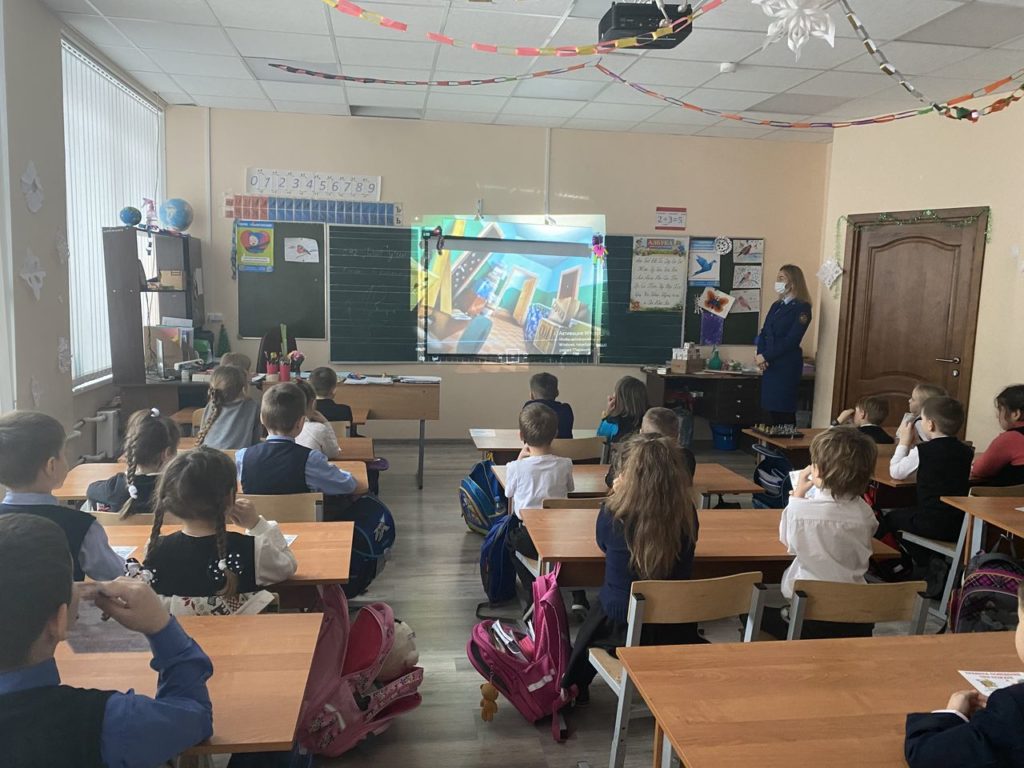 Ближе к концу занятия, для закрепления знаний, первоклассники посмотрели специально подготовленный видеофильм, герои которого ещё раз проговорили и продемонстрировали как нужно себя вести в опасных для жизни ситуациях и что делать, чтобы их избежать.
