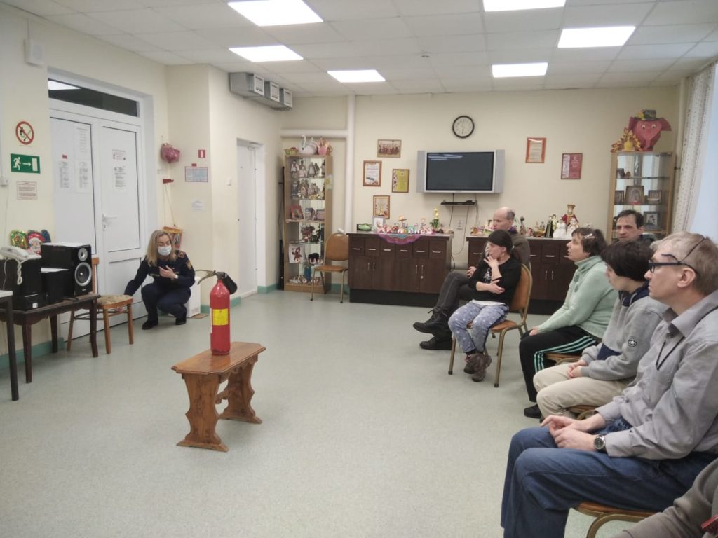 Профилактика, предотвращение пожаров и безопасность при возникновении возгорания становятся важной задачей реабилитационной работы с людьми. Накануне, в СРЦ «Психоневрологический интернат №10» п. Шапки прошла встреча подопечных социально-реабилитационного центра с Екатериной Петренко, представителем МО ВДПО Тосненского района и Ольгой Абдухаковой, старшим инспектором отдела надзорной деятельности и профилактической работы Тосненского района.