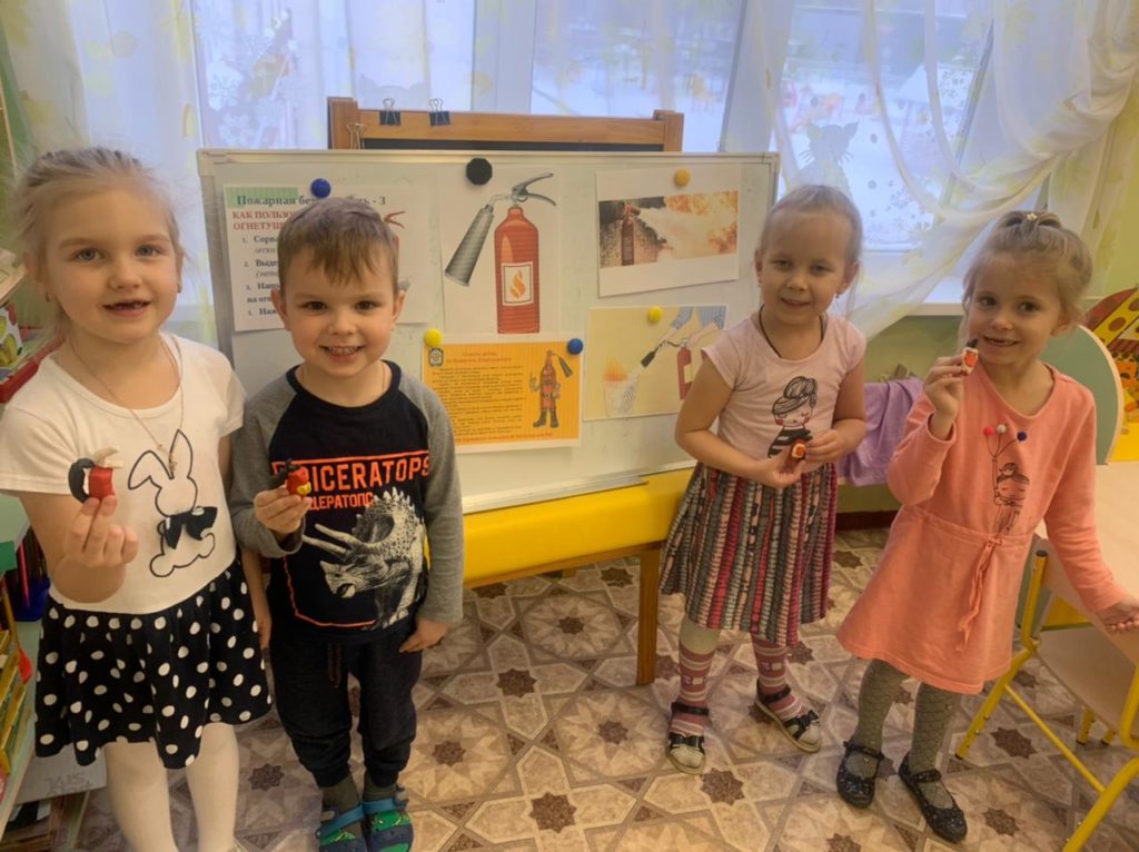 В группе «Родничок» после познавательного занятия «Огнетушитель – важный помощник в борьбе с пожарами» дети слепили из пластилина отличные огнетушители.