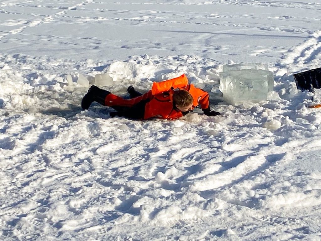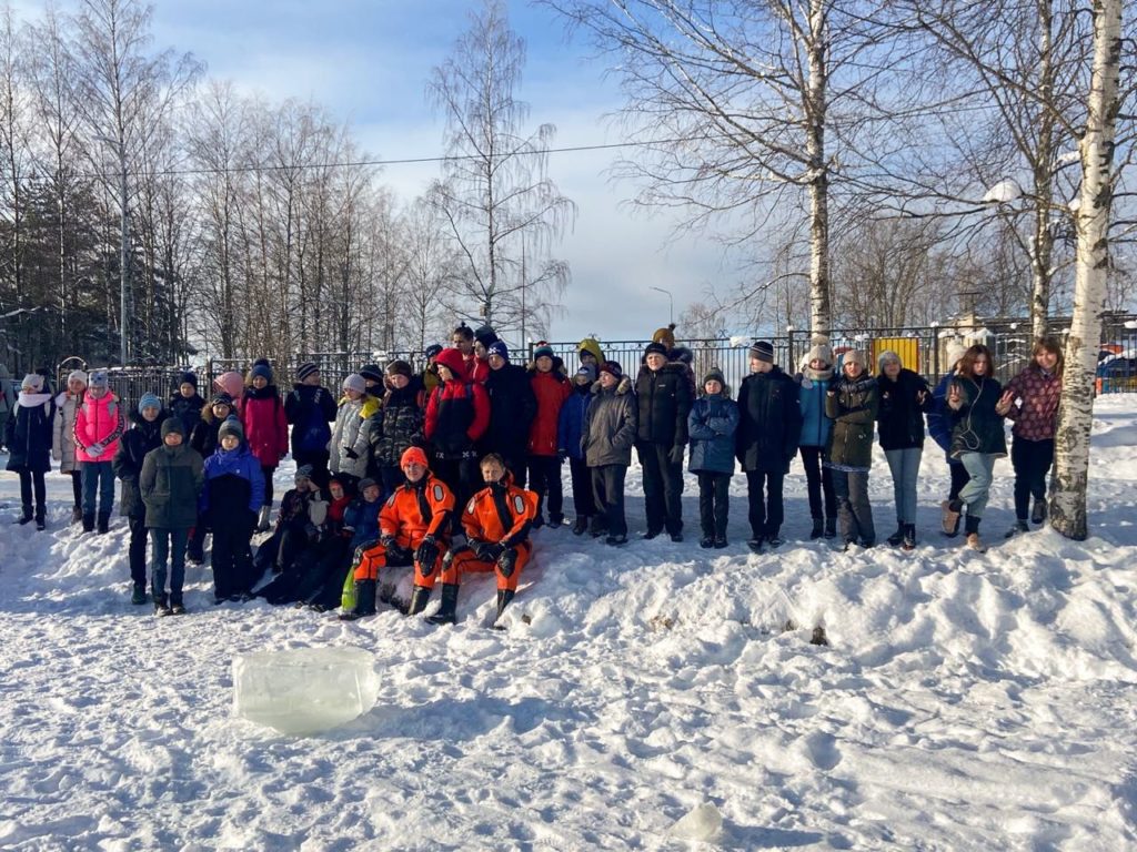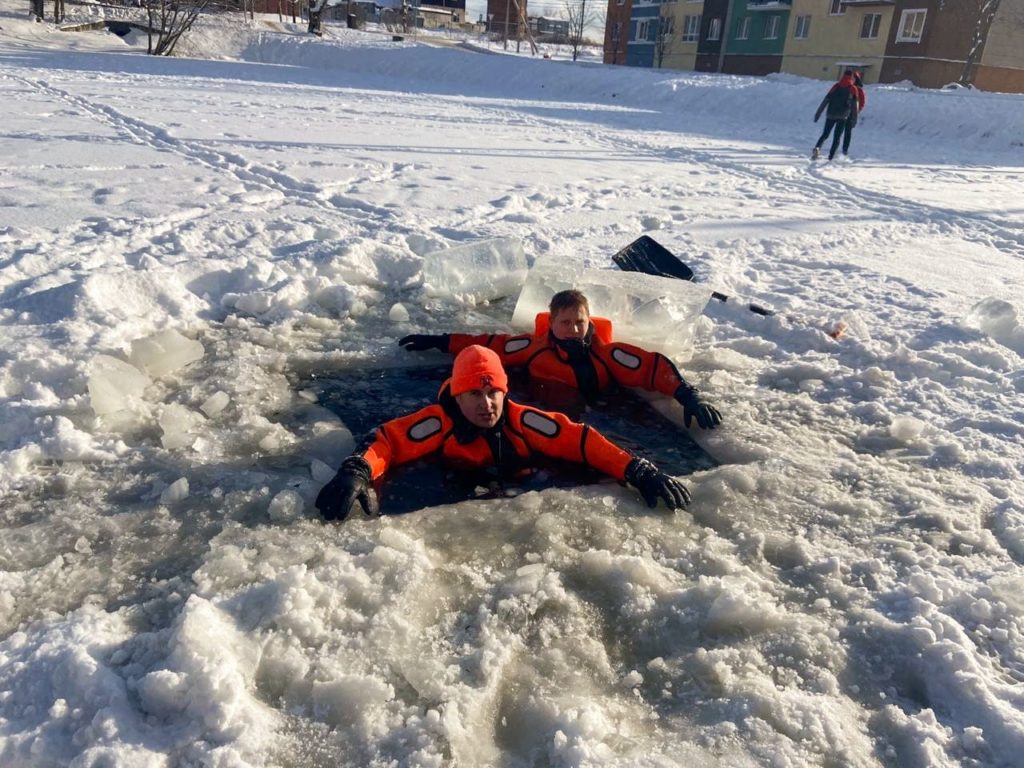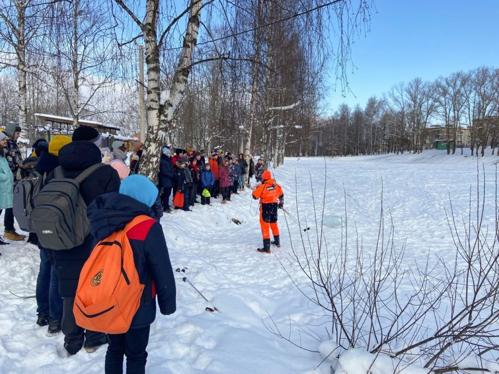 «Спасательные работы» проводились в гидрокостюмах, ребятам наглядно показали, что нужно делать, не поддаваясь панике, если все-таки случилась трагедия. Как со стороны пострадавшего, так и со стороны спасателя, действовать нужно решительно и быстро, нельзя терять ни минуты, так как в ледяной воде наступает моментальное переохлаждение. Только правильные и быстрые действия помогут выбраться из воды. В первую очередь необходимо соблюдать правила поведения на льду, выходить на лед без разрешения взрослых нельзя!