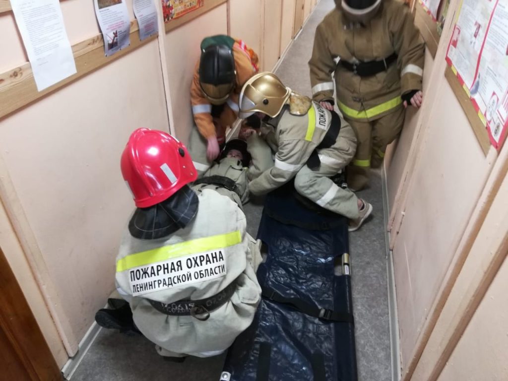 В Суховской школе Кировского района Ленинградской области прошла тренировка ДЮП — транспортивка пострадавшего на носилках «По-натовски» 3/1.