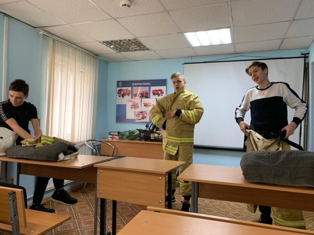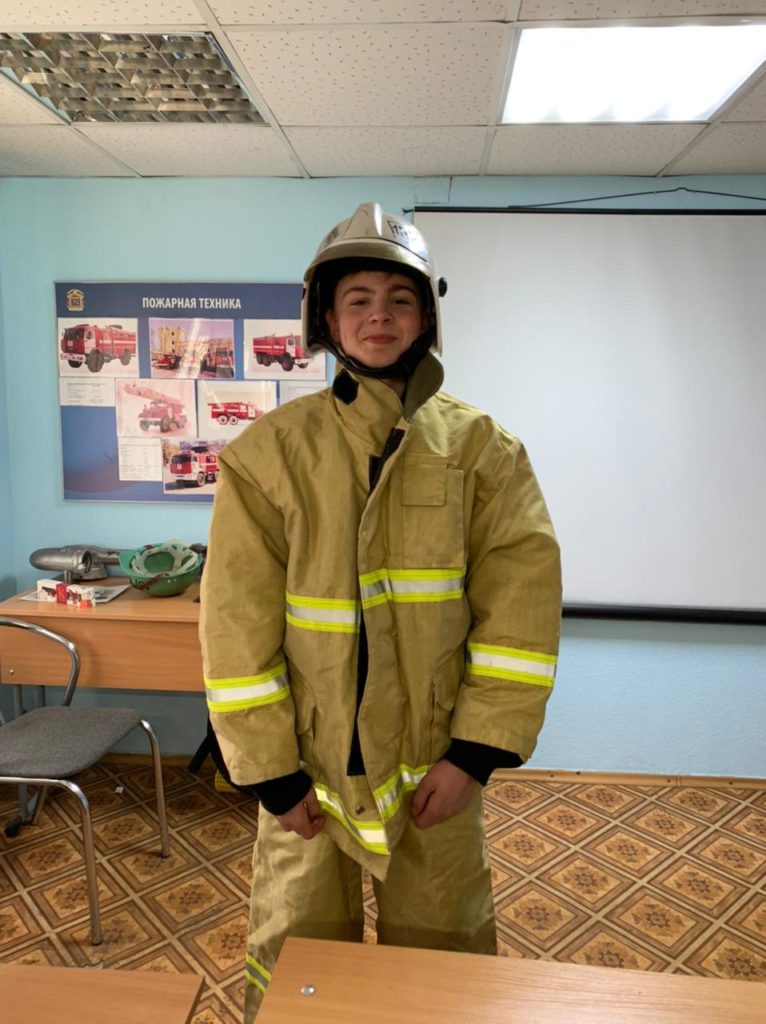 В соответствии с планом работы Дружины Юных пожарных «Нева» Кировской средней общеобразовательной школы №1 на базе 127 пожарной части Отряда государственной противопожарной службы Кировского района состоялось практическое занятие на тему: «Боевая одежда пожарного».