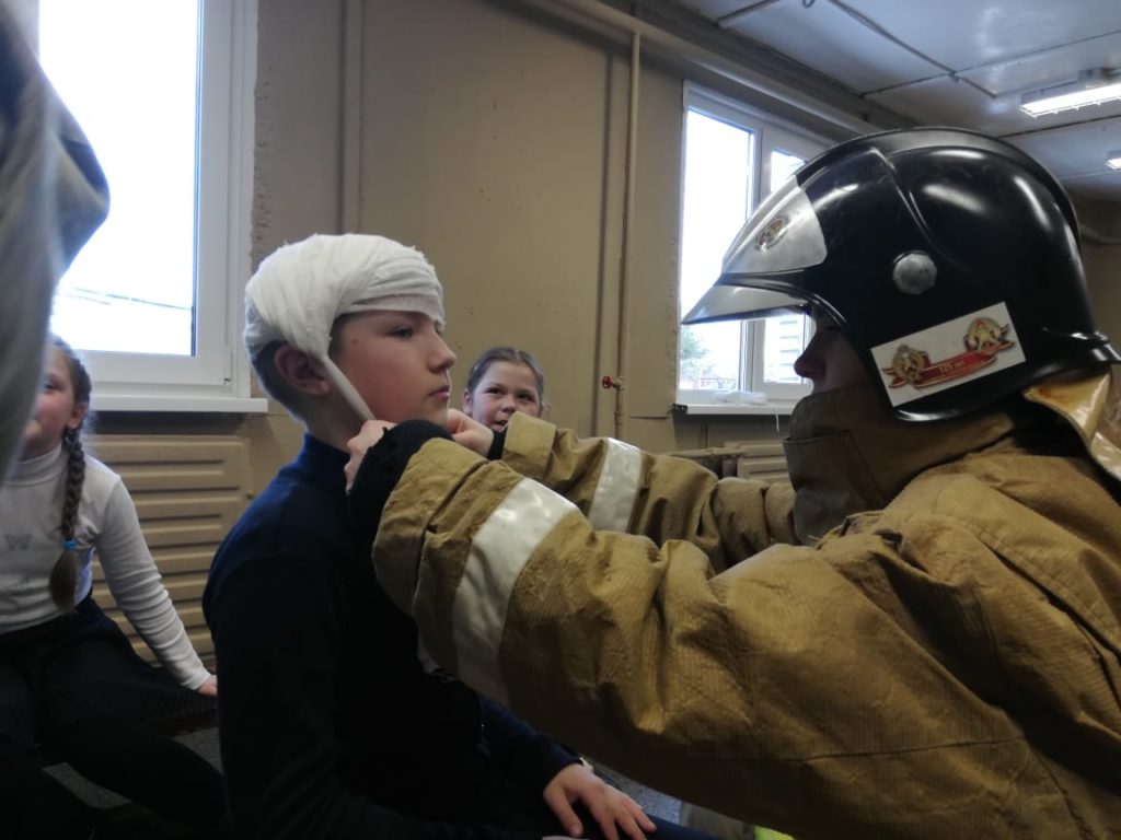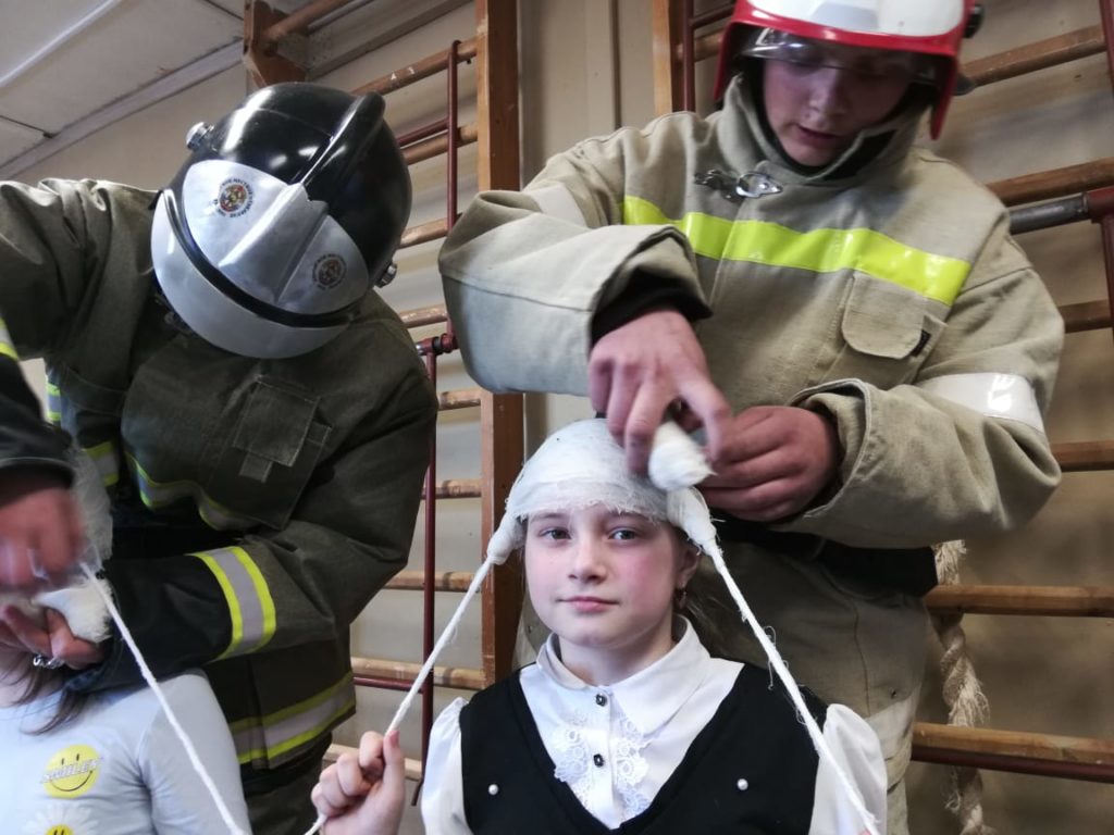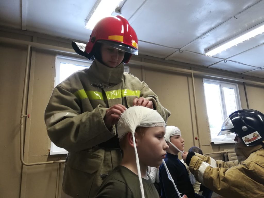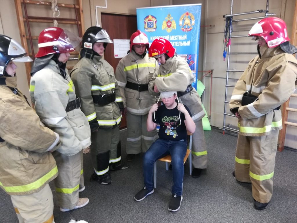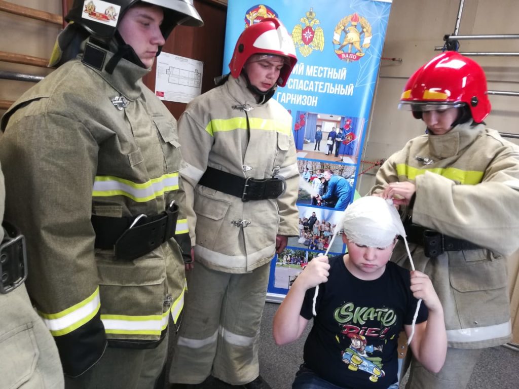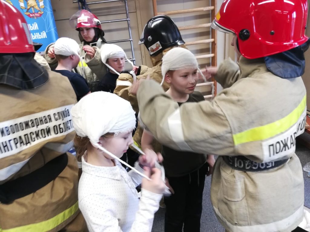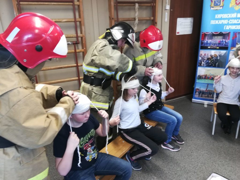 В Суховской школе Кировского района Ленинградской области при организации добровольного пожарного Суховского отделения ОУ «ДПК Кировского района Ленинградской области» Громова С. В. провели занятие с «Пожарными гномами» — МСП; повязка головы.