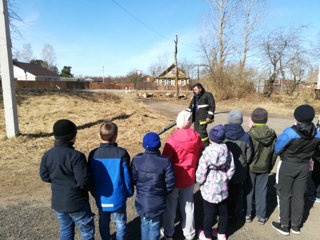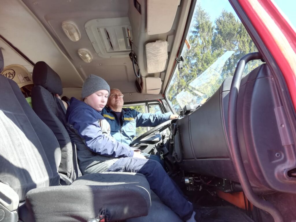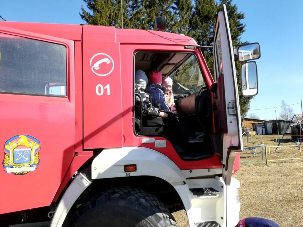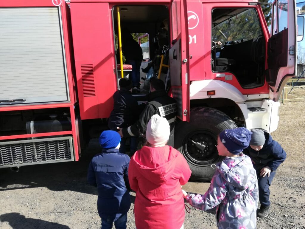 Познакомились с Пожарным автомобилем; как тушить горящую траву; и много другого интересного.