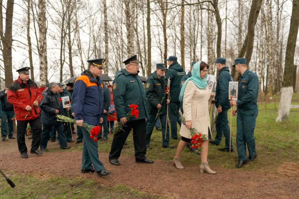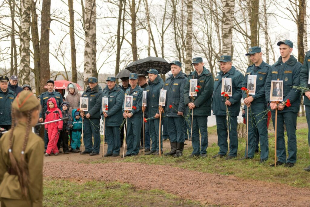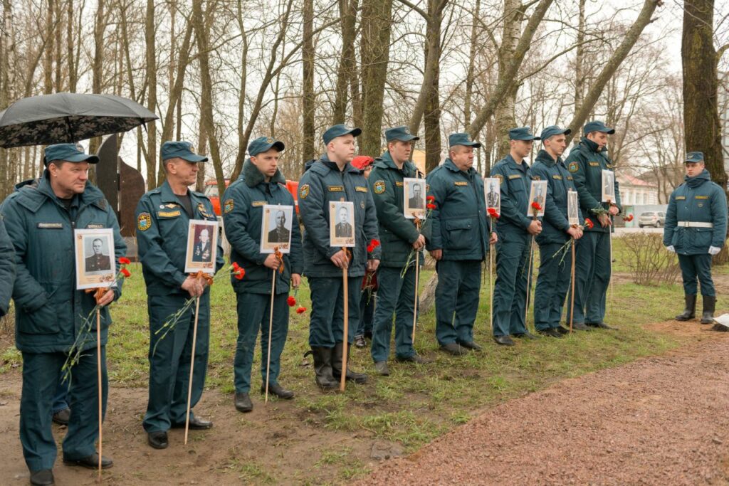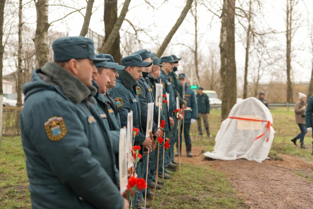 В открытии памятника «Пожарным Ленинградской области — участникам Великой Отечественной войны» приняли участие представители ГУ МЧС России по Ленинградской области, ГКУ «Леноблпожспас», председатель Кировского МО ВДПО ЛО Никулин А.В., глава администрации города Кировска, ветераны пожарной охраны, родственники, несколько поколений работников противопожарной службы региона, студенты пожарно-спасательного колледжа, юные пожарные.
