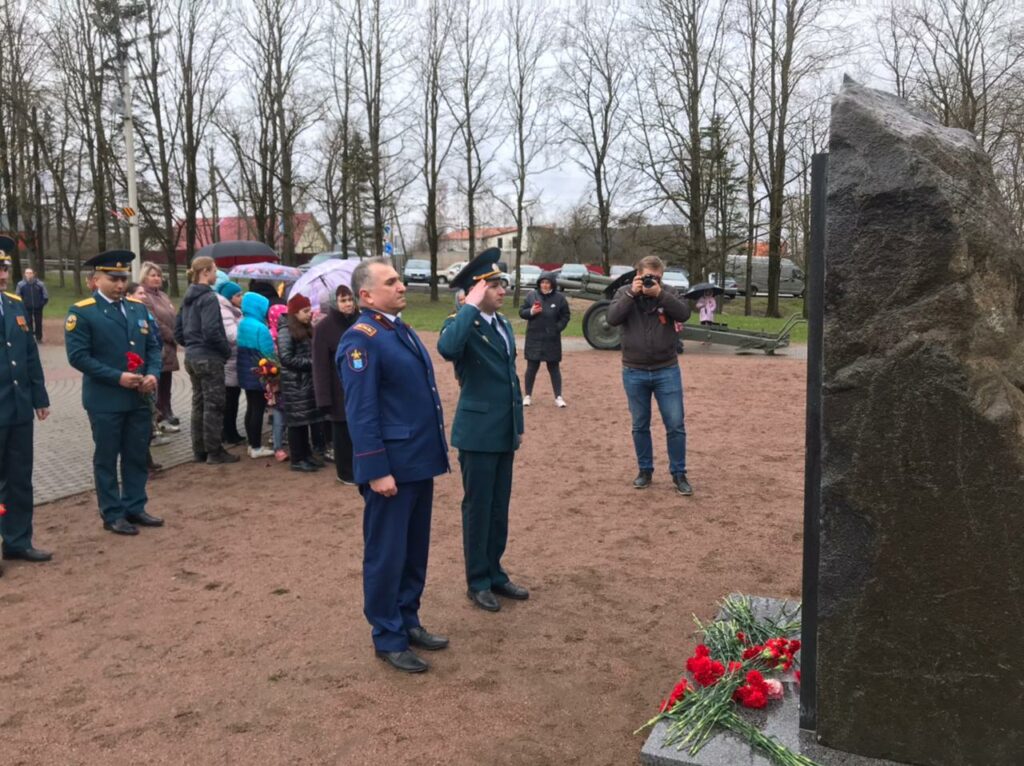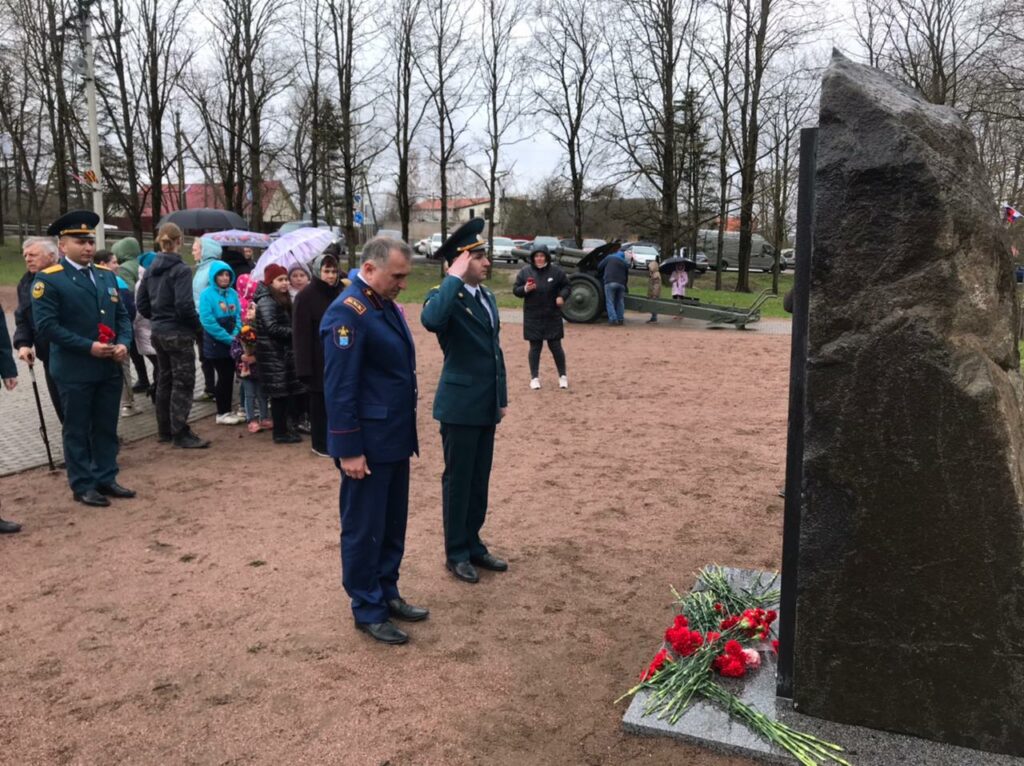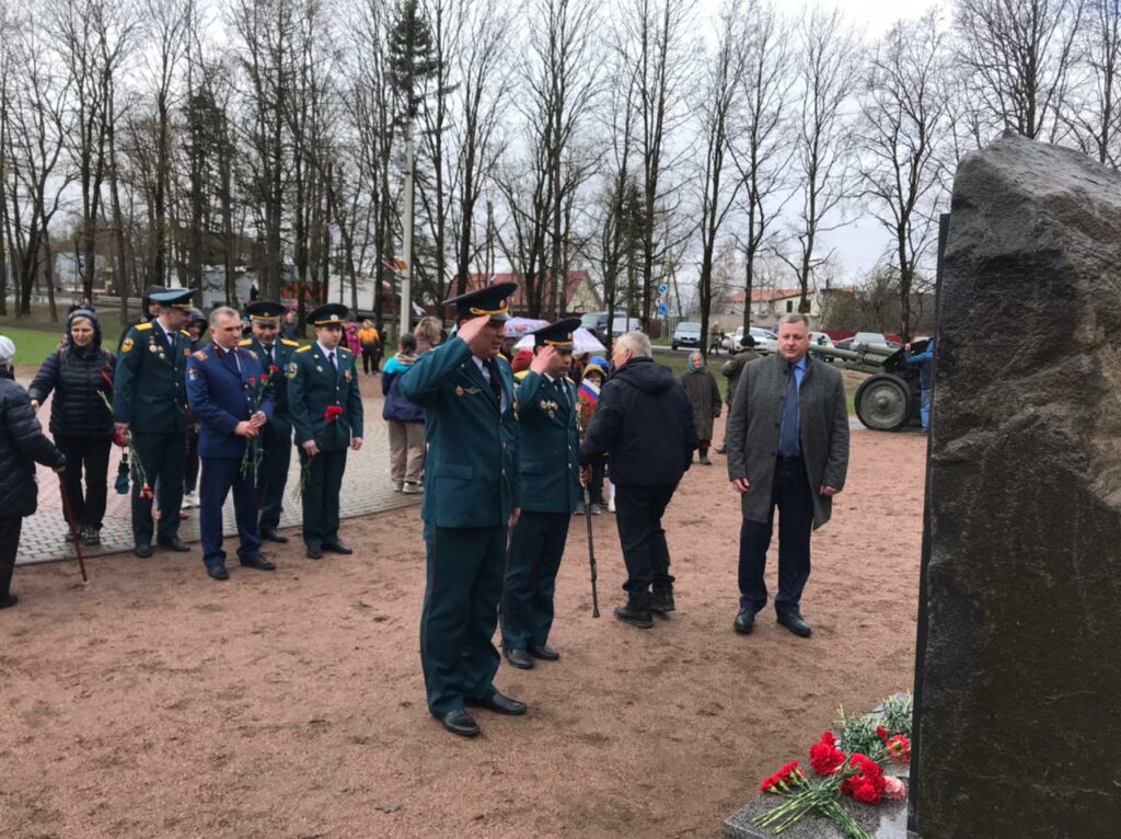 В возложении приняли участие заместитель начальника Главного управления МЧС России по Ленинградской области (по гражданской обороне и защите населения) Евгений Мусиенко, начальник отдела надзорной деятельности и профилактической работы Ломоносовского района Михеев Александр, председатель местного отделения Всероссийского добровольного пожарного общества Сейран Мангасарян, сотрудники ФГКУ «37 ОФПС по Ленинградской области», глава местной администрации МО Ропшинское сельское поселение — Дзейгов Мухарбек и глава муниципального образования Ропшинское сельское поселение Бахлаев Александр.