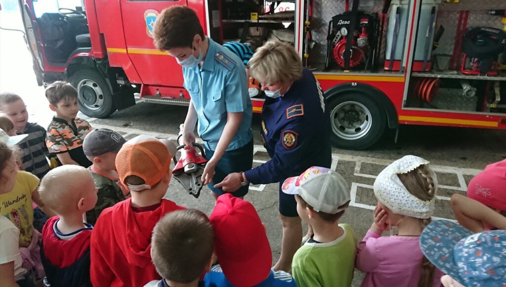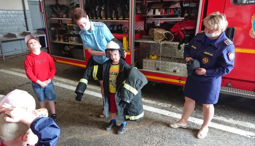 Ребята с восторгом примеряли каски, рассматривали пожарные машины. Эта экскурсия стала увлекательным приключением, которое понравилось каждому ребёнку и запомнится ему надолго.