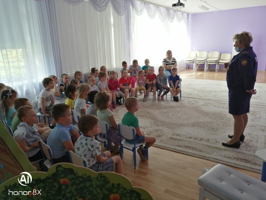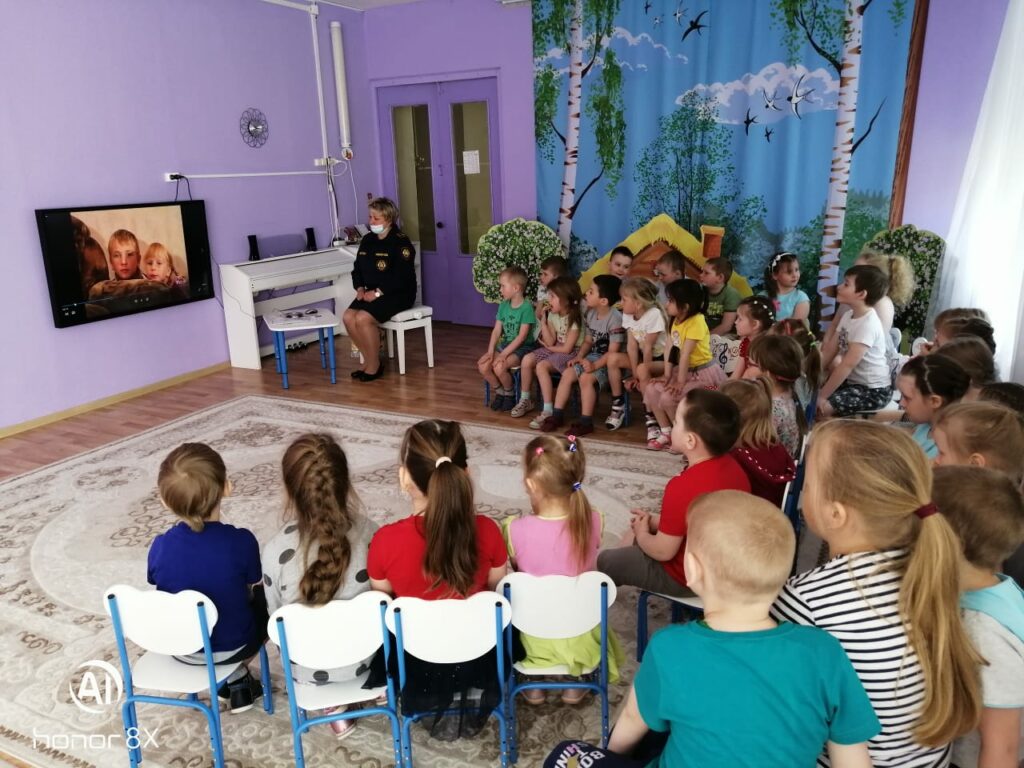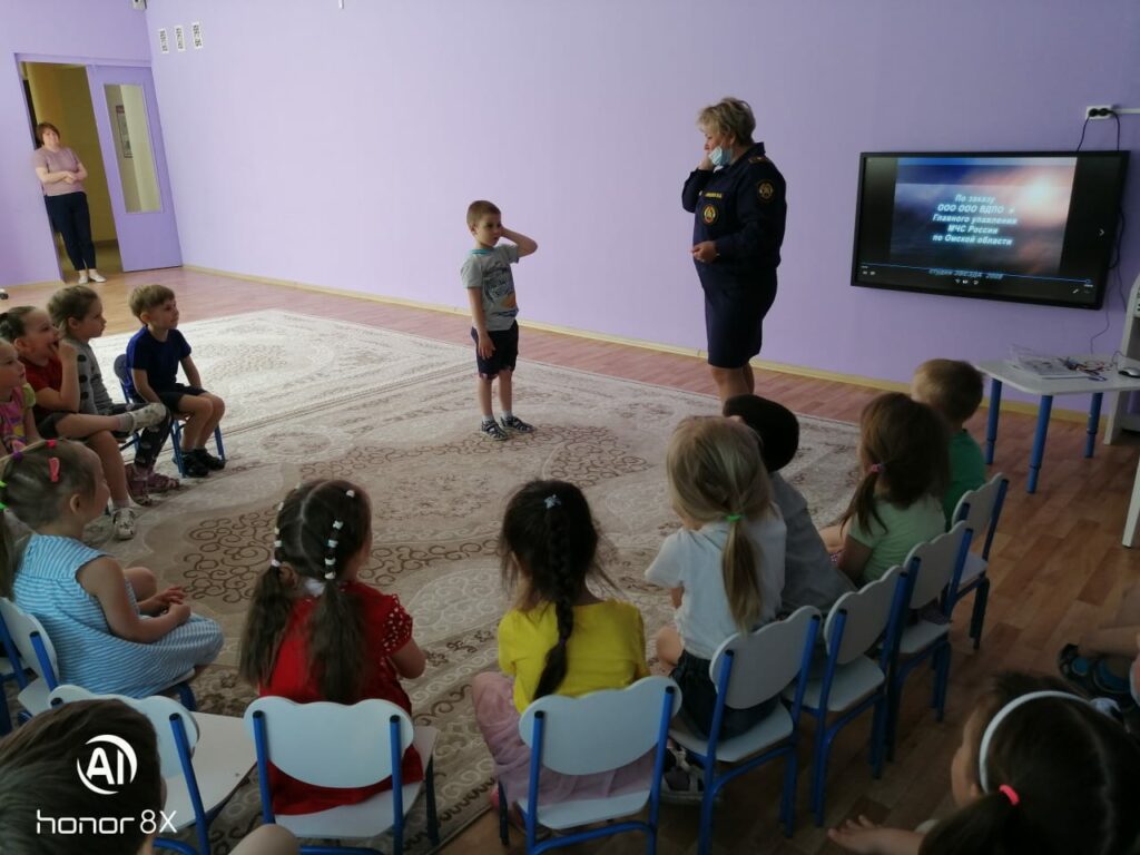 Чтобы лучше закрепить материал, дети посмотрели мультфильм на тему пожарной безопасности — вместе с героями ребята разбирались, какие действия могут привести к возгоранию и что следует предпринимать в первую очередь, если пожар все-таки начался.