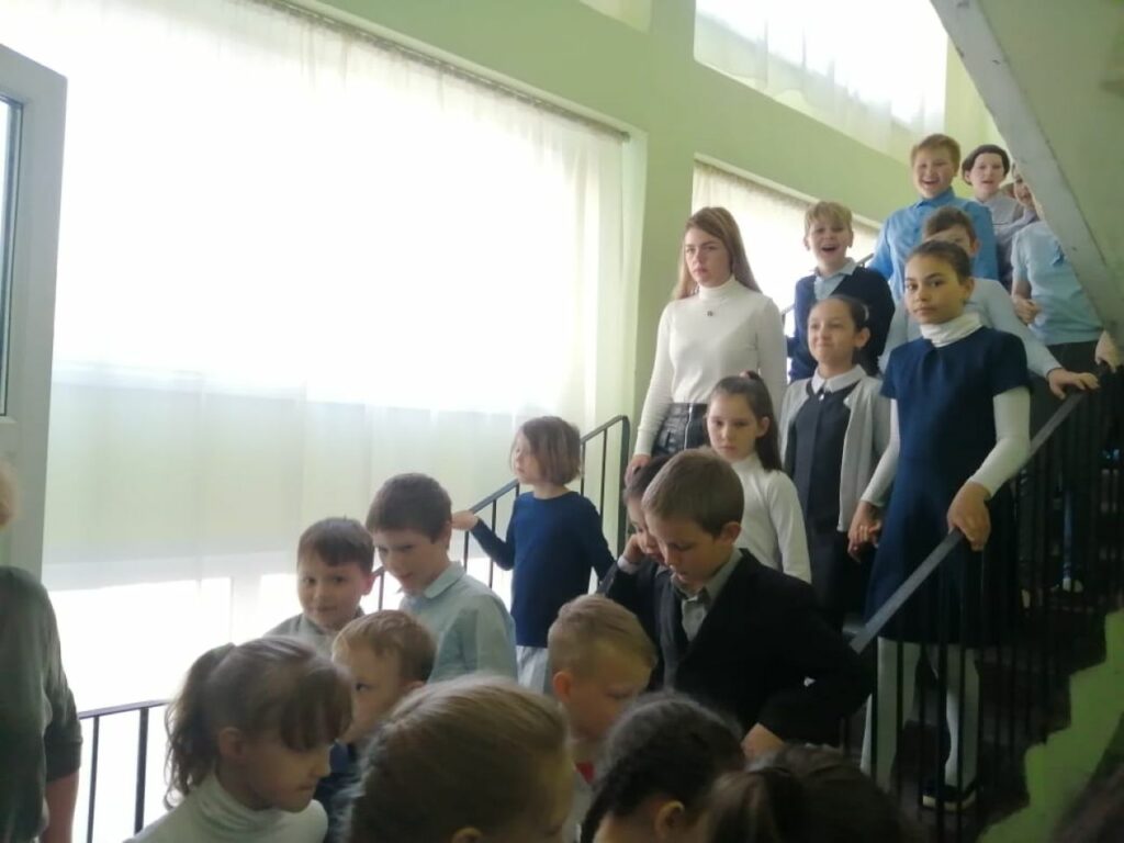 Условный очаг возгорания находился в кабинете химии на втором этаже. Сотрудники школы и сами ребята действовали очень оперативно и слаженно — с первым же переливом тревоги покинули классы и отправились по безопасным эвакуационным путям к выходу.