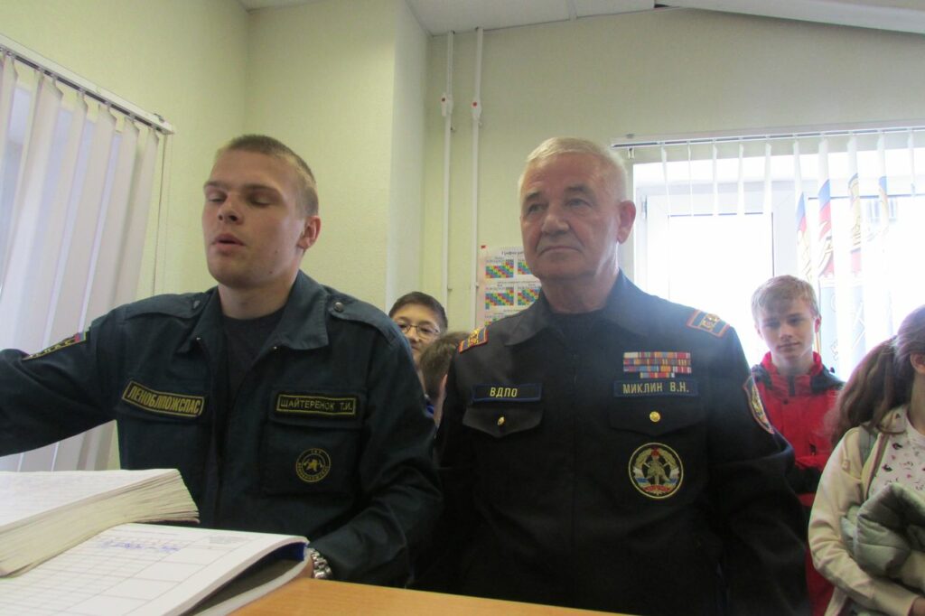 А пока беседу на противопожарную тему с ними провели инструктор пожарной профилактики Чеснокова Виктория и заместитель председателя МО ВДПО Миклин В.Н. О технических характеристиках пожарной техники им рассказали бойцы дежурного караула Матвей и Алексей.