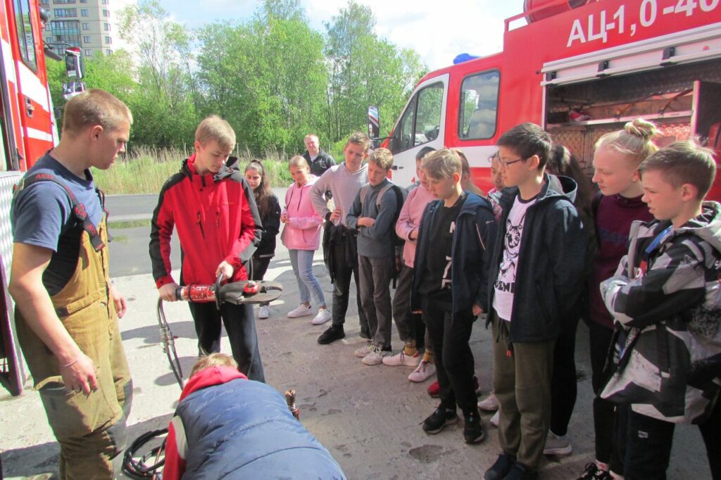 27 мая в 147 пожарную часть пришли учащиеся 6 класса Бугровской общеобразовательной школы. С нового учебного года их класс будет называться дружиной юных пожарных. Это их первое посещение пожарной части, первое знакомство с боевой техникой и пожарно-техническим вооружением.
