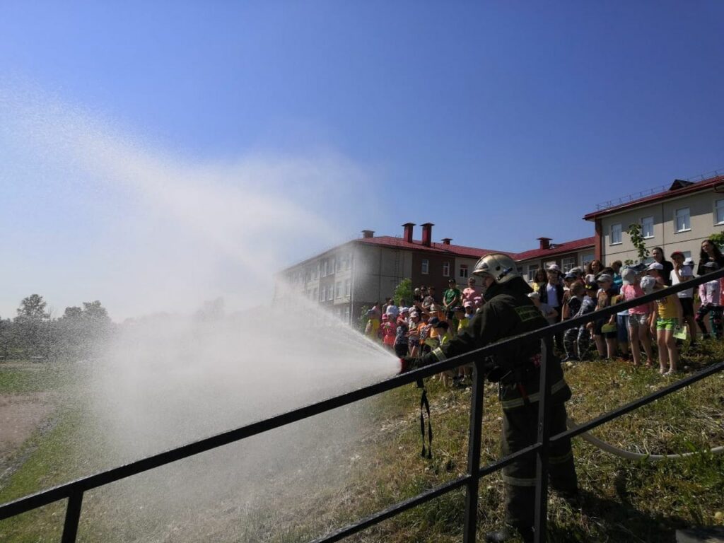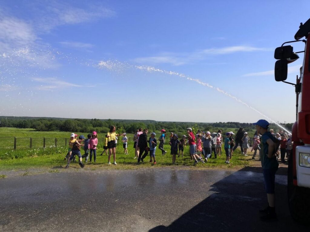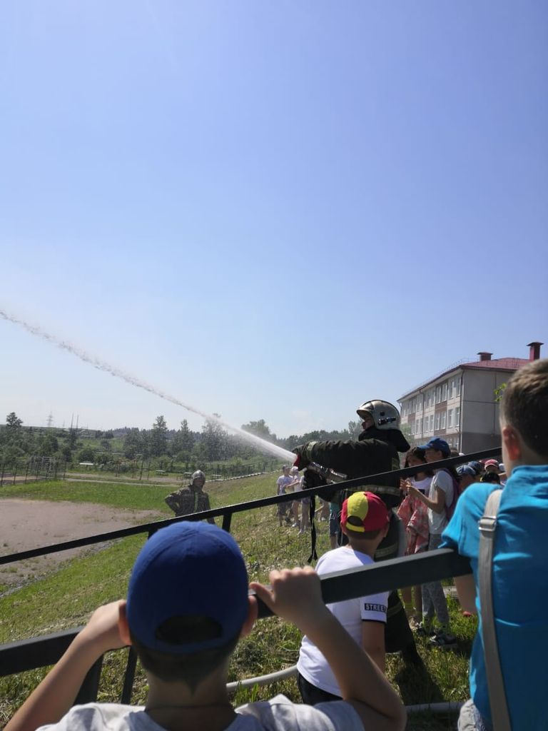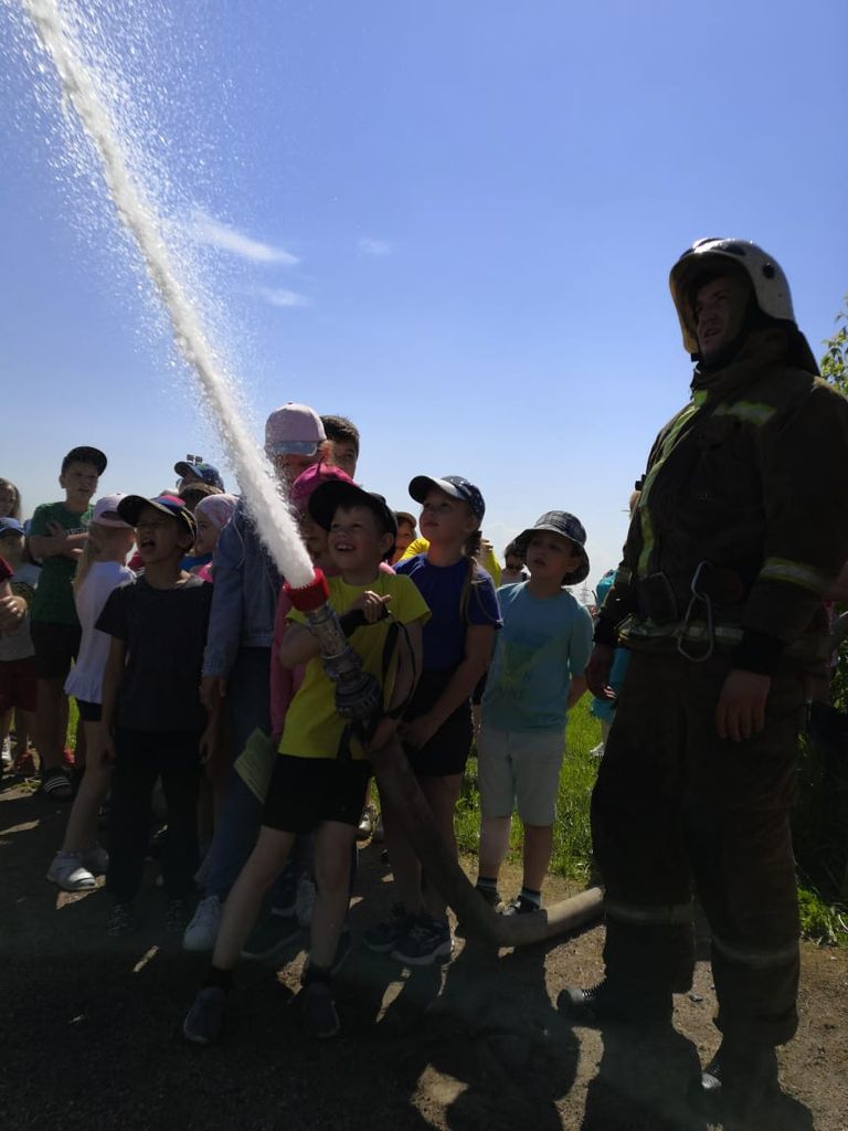 Пожарные продемонстрировали детям подачу вводы, пены из пожарных рукавов, показали технику и пожарное вооружение. У детей появилась возможность самим попробовать «тушить» условный пожар. В этот жаркий, солнечный день демонстрация подачи воды была просто как нельзя кстати, дети получили бурю положительных эмоций.