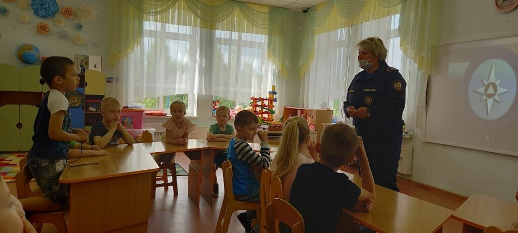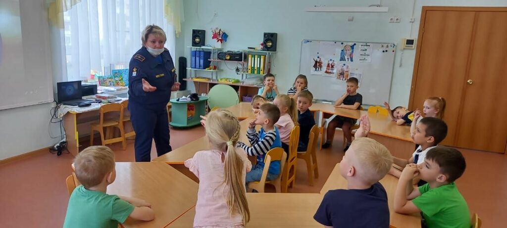 Профилактическое занятие по пожарной безопасности прошло накануне с воспитанниками подготовительной группы «Золотая рыбка» в детском саду «Сказка», г. Тосно.