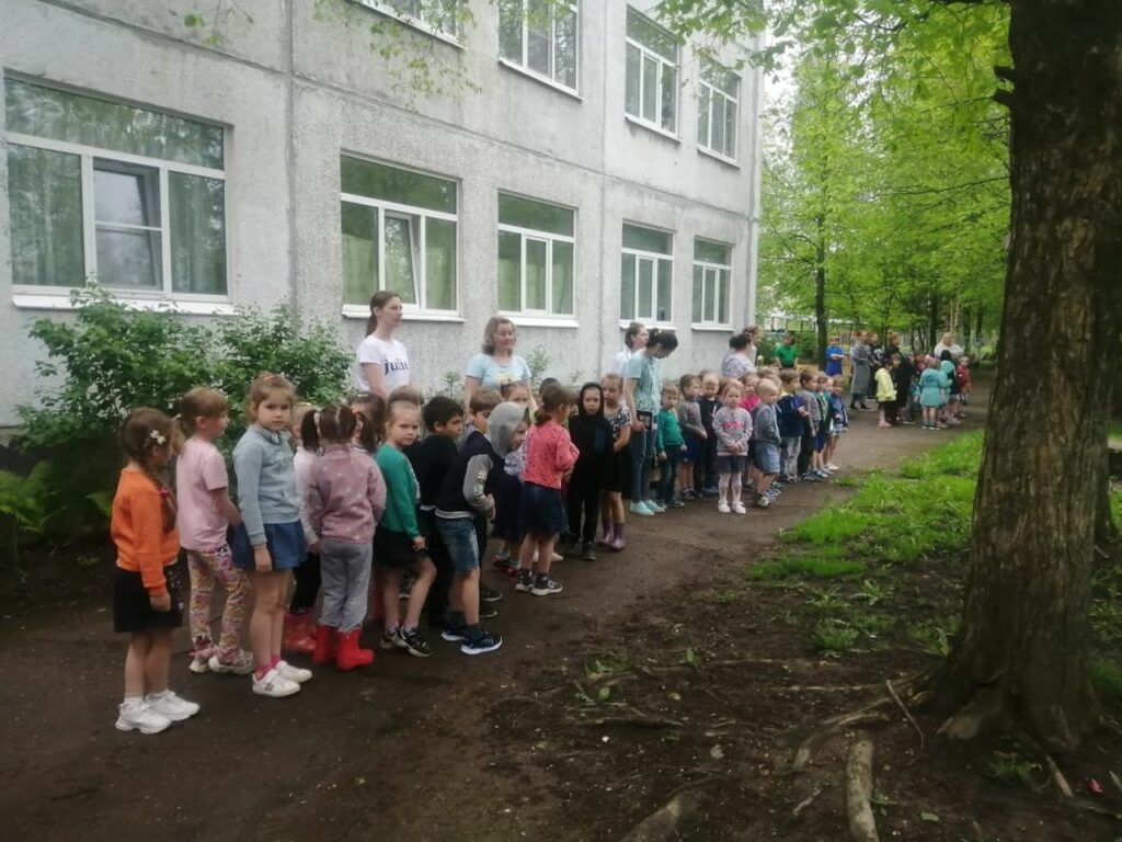 Ребятишки внимательно слушали своих воспитателей и четко следовали за ними, покидая здание. Все воспитанники и персонал покинули здание детского сада в нормативное время, никого, не потеряв по пути. В установленном месте сбора были проверены списки присутствующих на утреннем обходе, и было отмечено полное соответствие.