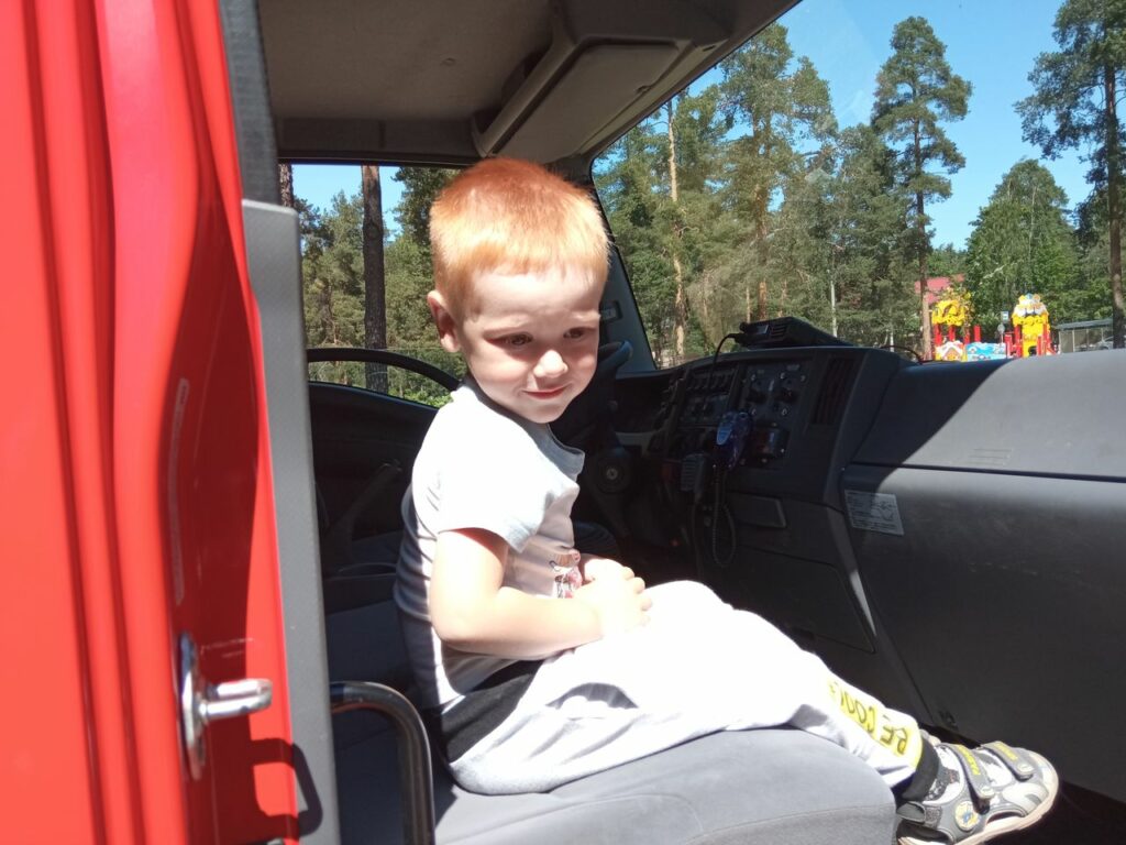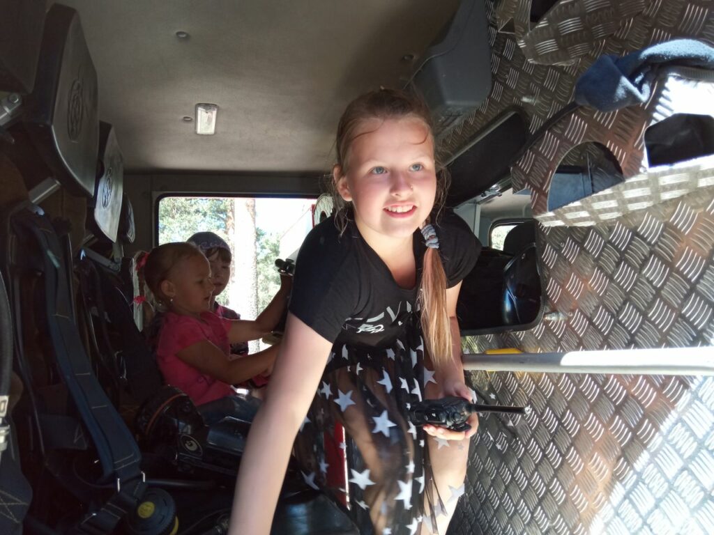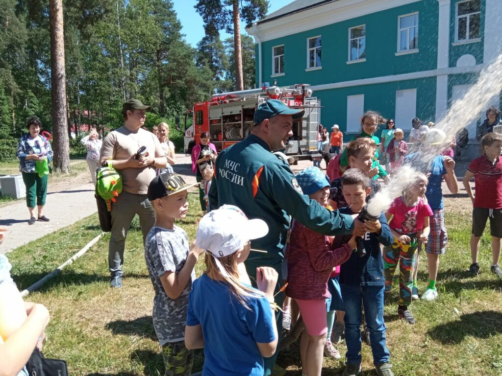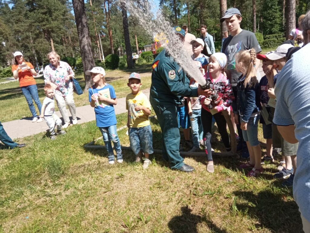 Но самое интересное было посидеть в пожарной машине и побегать под струей воды из пожарного ствола.