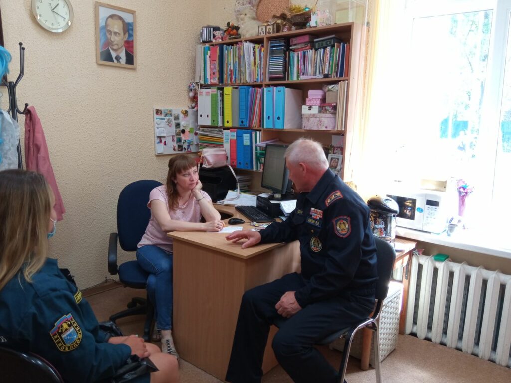 Накануне праздника заместитель председателя совета Всеволожского МО ВДПО Миклин В.Н., инспектор ОНД и ПР Корж М.С., инструктор противопожарной профилактики ОГПС Корнеева А.В. обсудили сценарий с заведующей художественно-творческого отдела ЦКД Валеевой Еленой Юрьевной.