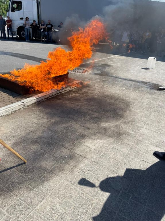 Согласно плану тренировки сначала прошла учебная эвакуация работников объекта, потом председатель совета Мангасарян Сейран Георгиевич провел теоретическую часть тренировки, рассказав об универсальном устройстве для защиты органов дыхания при эвакуации из задымленной зоны – Самоспас. Также был проведен инструктаж по применению первичных средств пожаротушения – огнетушителей. Потом приступили к практической тренировке – тушение открытого огня, используя огнетушитель. Работники пожарной части продемонстрировали подачу воды из стационарного лафетного ствола пожарной автоцистерны.