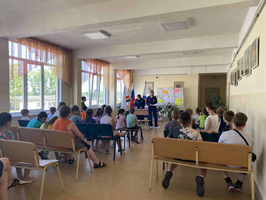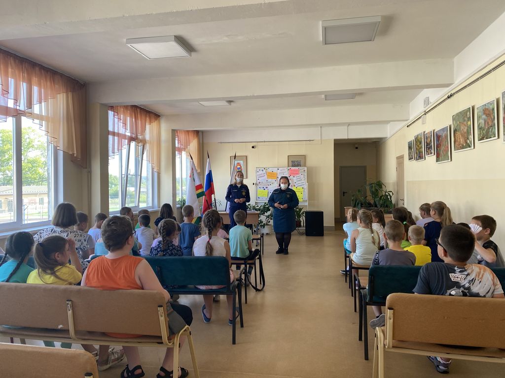 Очередное занятие по пожарной безопасности прошло в детском оздоровительном лагере, организованном на базе Гимназии № 1 г. Никольское.