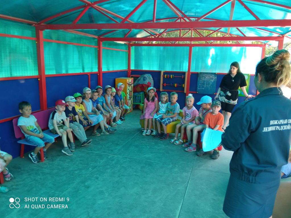 За день до летнего экватора в детском саду поселка Романовка Всеволожского муниципального района прошли занятия по пожарной безопасности с детьми детского сада № 12. Во время прогулки были собраны пять разных возрастных групп, но и их оказалось не более 40 человек.