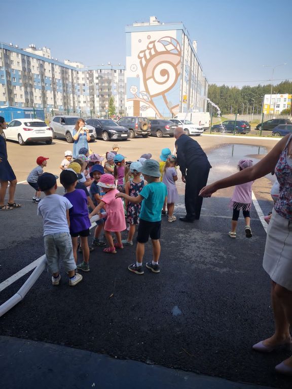 Сегодня 14 июля 2021 года мы вновь встретились с воспитанниками дошкольного отделения Янинского центра образования. Как и накануне встреча проходила возле 149 пожарной части поселка Янино. Но, к сожалению, боевые пожарные машины детям показать не удалось, так как по боевой тревоге они уехали на тушение лесного пожара.