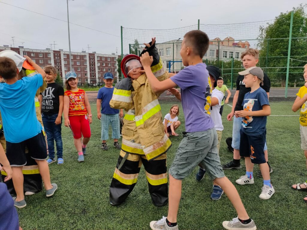 Ребята учились выносить пострадавших из огня, тренировались заливать условный очаг возгорания водой и облачившись в боевую одежду настоящих пожарных соревновались в скорости и ловкости, преодолевая сложные препятствия.