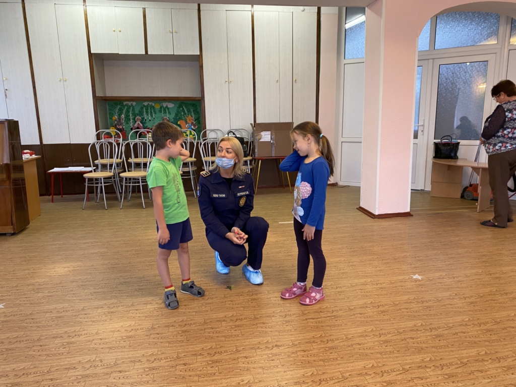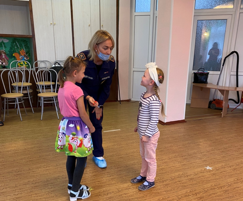 В ходе беседы детям рассказали о том, какие правила безопасности нужно соблюдать, чтобы предотвратить возникновение пожара, и как следует себя вести в случае пожара. Ребятам объяснили, почему «спички — детям не игрушка», что игра с огнем очень опасна, огонь приносит много добра, но без присмотра может превратиться в жестокого врага человека, принося беды и несчастья. Детям также напомнили номера экстренных служб. Также ребята отрабатывали навык общения со службой спасения и эвакуации из задымленного помещения.