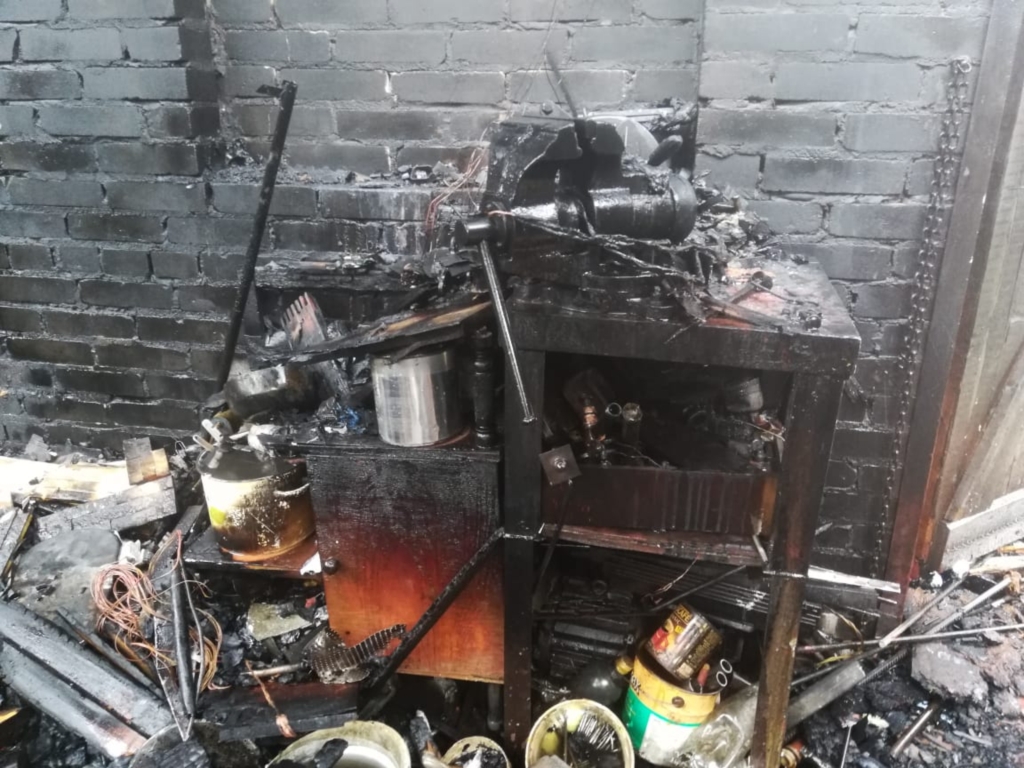 Сгорели пристройка к дому 8м х 8м, сарай дровяной 3м х 3м.