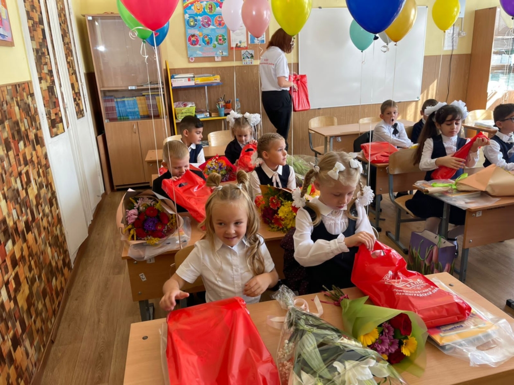 В этот волнительный для всех день учеников и их первую учительницу поздравили с началом нового учебного года, пожелали терпения, успехов, больших побед и новых свершений, подарив подарки от Ломоносовского местного отделения ВДПО – канцелярские наборы – все самое необходимое для уроков и дополнительных занятий!
