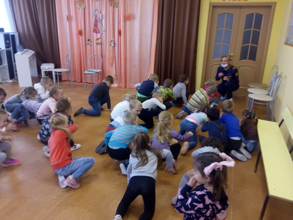 Кроме того, значительная часть занятия была отведена под отработку навыков спасения – дети учились правильно выбираться из задымленного помещения, прикрывая органы дыхания влажной тряпочкой или салфеткой, а также внимательно слушали правила.