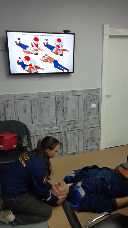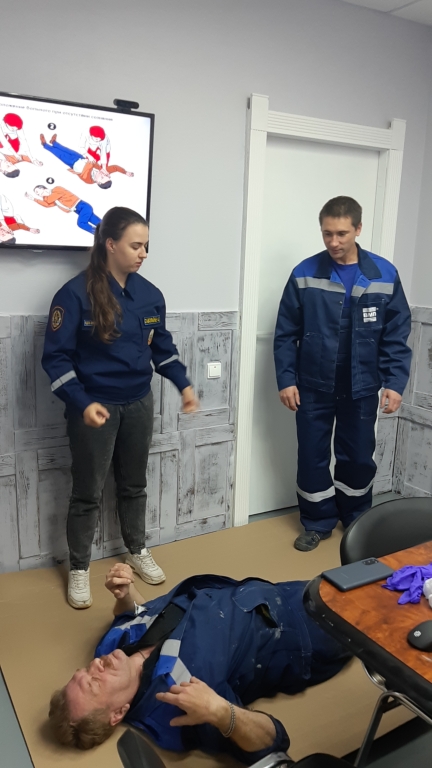 Анастасия пояснила общий алгоритм спасения, показала, как действовать при потере сознания, рассказала и показала на практике алгоритм действий при кровотечениях, переломах, ожогах, укусах насекомых и змей, при тепловом и солнечном ударе. Сотрудники предприятия принимали активное участие в беседе, показали хорошие знания по теме. Полученные знания помогут в случае возникновения чрезвычайной ситуации оказать первую помощь пострадавшему до прибытия медицинских сотрудников.