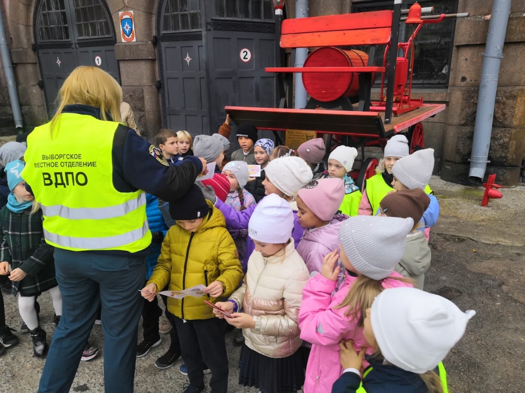 Детям показали пожарные машины, автолестницы. Учащиеся и учителя задавали много вопросов об истории пожарной охраны, о профессиональной деятельности. Зрелищное действие происходило в боксах для техники. Здесь были продемонстрированы предметы боевой одежды, пожарно-спасательный инвентарь. В заключение экскурсии ребятам рассказали о том, как вести себя в случае пожара и как не допустить его возникновения. Представитель из Выборгского местного отделения ВДПО ЛО, раздал яркие памятки, чтоб еще раз наглядно напомнить о соблюдении правил пожарной безопасности.