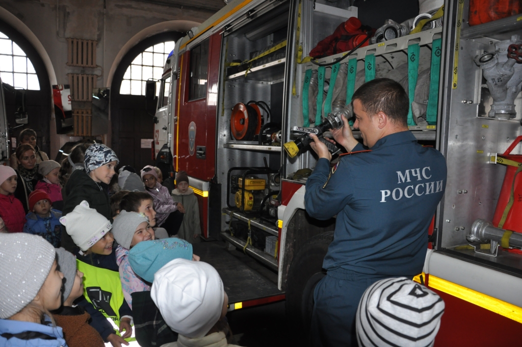 Экскурсию проводил заместитель начальника ОНД и ПР Выборгского района Анисенков П.Г., инженер отделения ОСП и П Тарасенкова Д.С., вместе с представителем Выборгского местного отделения ВДПО ЛО.