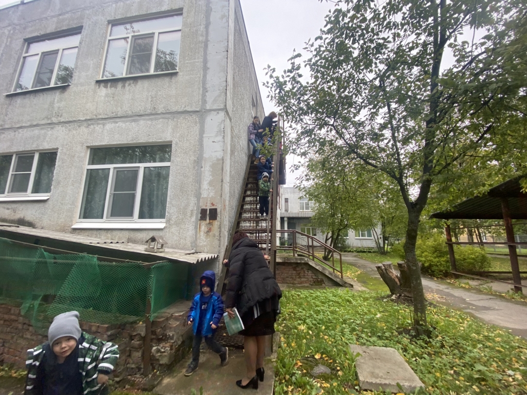 В считанные минуты после срабатывания сигнала тревоги, воспитатели и административный персонал организовали своих воспитанников и направились к безопасным выходам из здания.