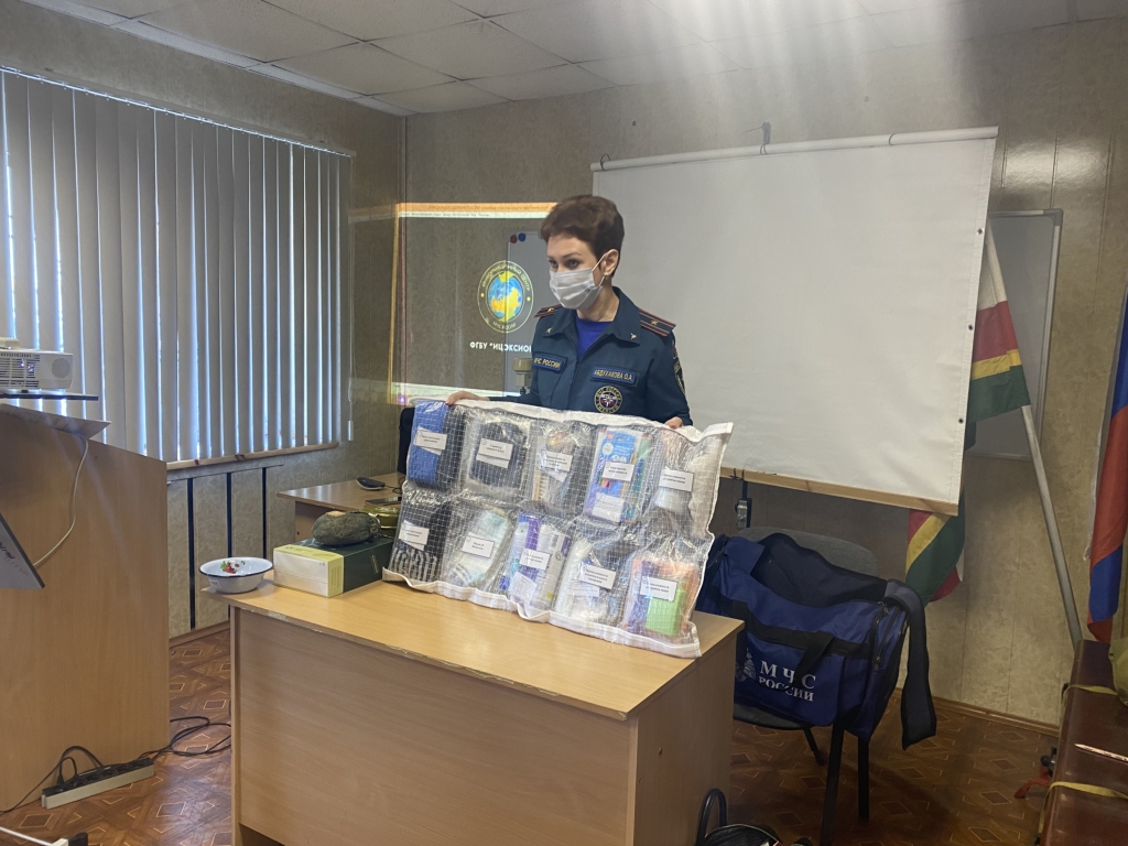 В качестве практической части занятия разбирали «тревожный» чемоданчик — базовый набор вещей для выживания в экстремальных ситуациях до прибытия спасателей или до безопасной эвакуации из зоны чрезвычайной ситуации, будь то землетрясение, наводнение, пожар и т.п.