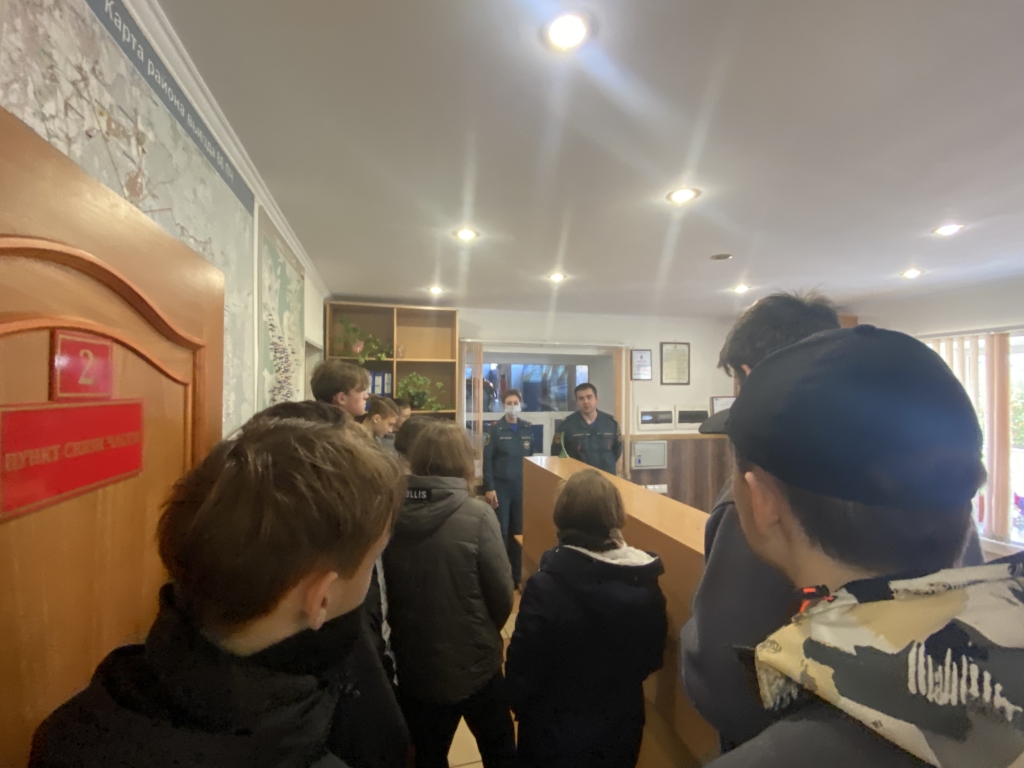 Школьники смогли пройтись по территории всей части — заглянуть к диспетчеру, увидеть караульные помещения и гараж с пожарной техникой.