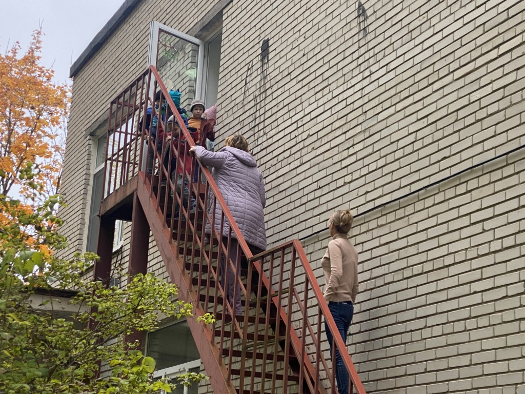 Не успел закончится урок, как его прервал сигнал пожарной тревоги — на первом этаже детского сада был обнаружен «условный» очаг возгорания.
