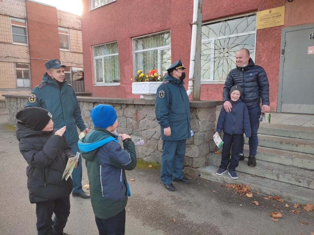 Сотрудники отдела надзорной деятельности и профилактической работы Выборгского района управления надзорной деятельности и профилактической работы Главного управления МЧС России по Ленинградской области совместно с учениками 2 А класса из «Дружины юных пожарных «Искрята» МБОУ «Первомайский ЦО» и Выборгским местным отделением ВДПО ЛО на территории поселка Первомайское Выборгского района провели рейд по соблюдению мерам пожарной безопасности, в ходе которого напомнили жителям о номерах телефонов вызова пожарной охраны и требованиях пожарной безопасности в быту в осенне-зимний период. Разместили на информационных стендах и раздали гражданам памятки с номерами телефонов экстренных служб и действиями при возникновении пожара.