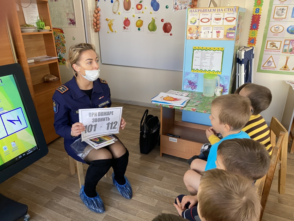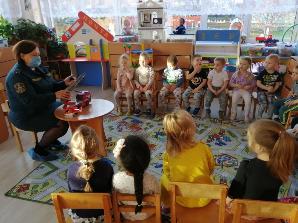 Профилактическая беседа по пожарной безопасности состоялась для совсем юных воспитанников групп «Колобок» и «Чебурашки» детского сада №10 г. Никольское Тосненского района.