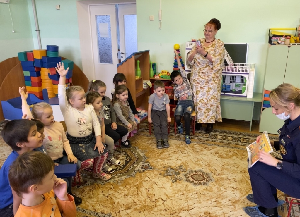 Поскольку ребята совсем маленькие – от 2 до 6 лет, то формат урока был построен так, чтобы им было интересно и легко воспринимать столь сложную тему. С помощью красочных пожарных карточек ребята узнали, какие действия ни в коем случае нельзя совершать, чтобы не допустить возникновения пожара и как вести себя при встрече с огнем – как связываться со службой спасения и что говорить диспетчеру, чтобы быстро получить помощь!