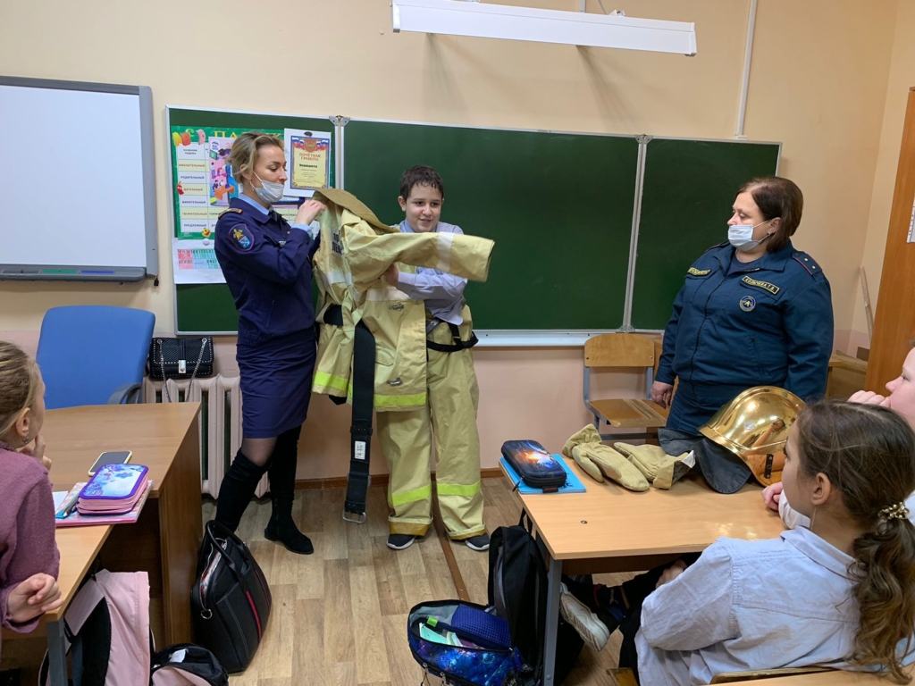 Кстати! А еще в ходе занятия ребята успели примерить боевую одежду пожарных — было весело и интересно!