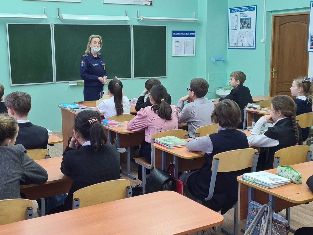 Профилактическое занятие по пожарной безопасности прошло с учениками 5-го класса средней образовательной школы № 1 поселка Ушаки.