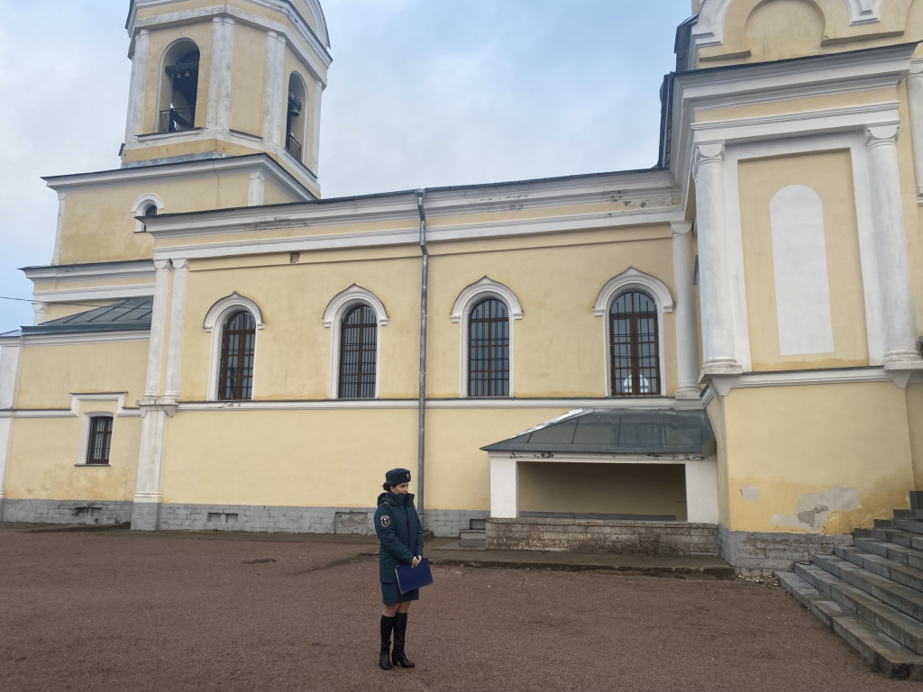 В рамках контрольно-надзорного мероприятия в православной местной религиозной организации приход храма успения божией матери д. Лезье Тихвинской епархии русской православной церкви (московский патриархат) инспектор отдела надзорной деятельности и профилактической работы Кировского района Ксения Никулина провела для священнослужителей занятие по требованиям пожарной безопасности.