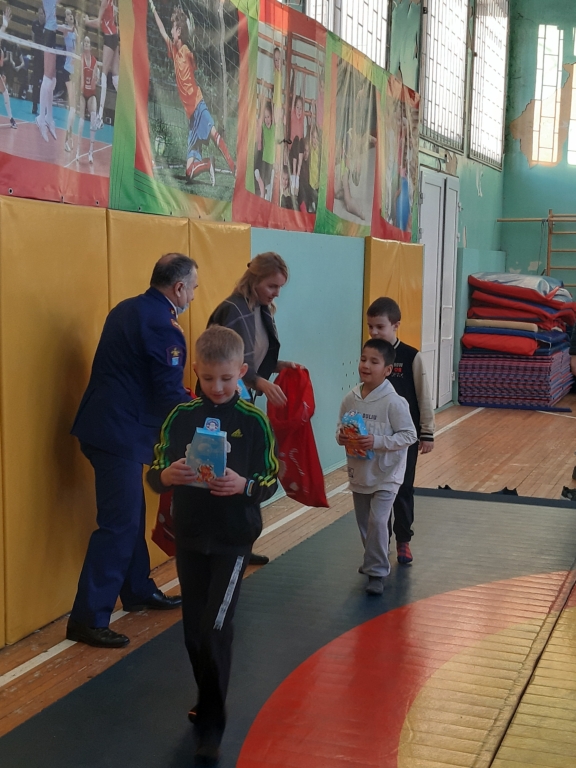 Поздравляя первоклашек с началом учебного года, Сейран Георгиевич обещал вернуться с подарками на Новый год. И вот сегодня в преддверии Нового года за хорошие успехи в учебе и отличное поведение первоклассникам подарили сладкие подарки от Ломоносовского местного отделения ВДПО с пожеланиями веселых и интересных новогодних каникул.