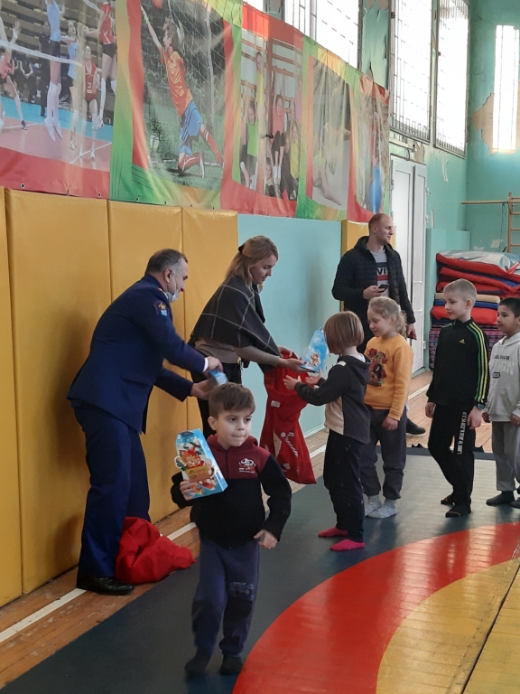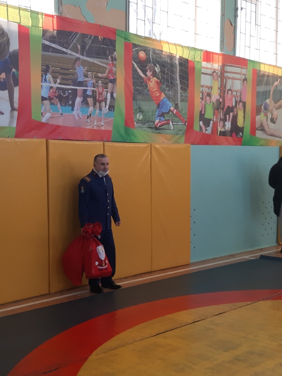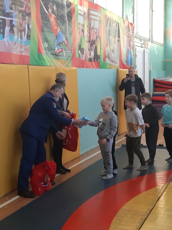 Председатель совета Ломоносовского местного отделения ВДПО Мангасарян Сейран Георгиевич 22 декабря 2021 года поздравил с наступающим Новым годом учеников первого класса Нагорной школы деревни Малое Карлино Ломоносовского района Ленинградской области.