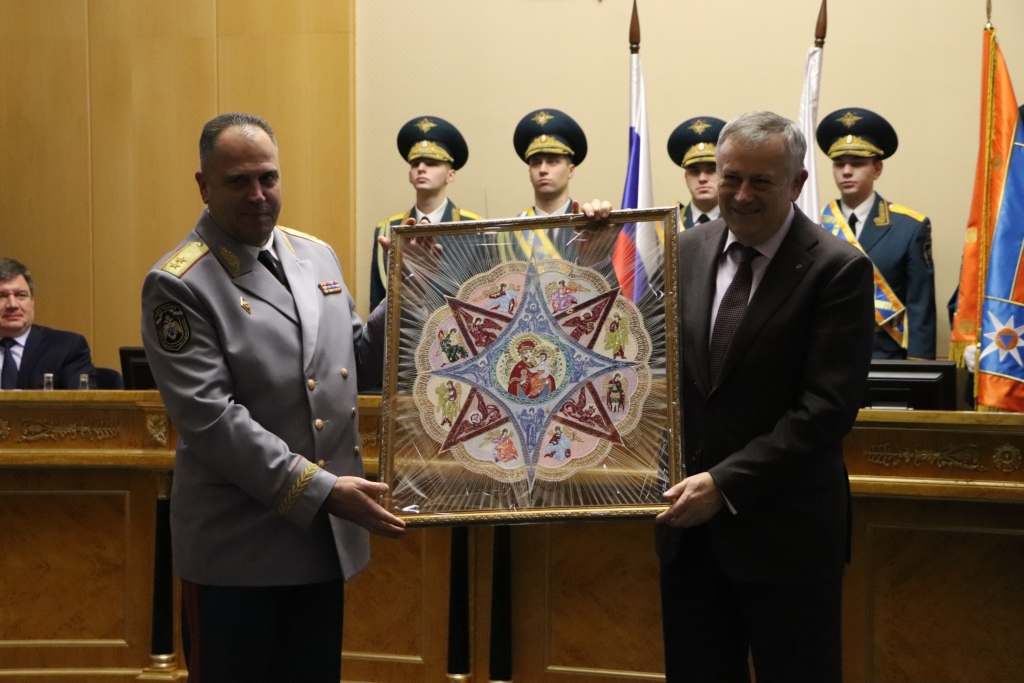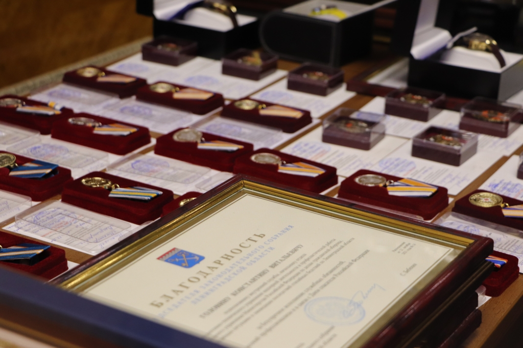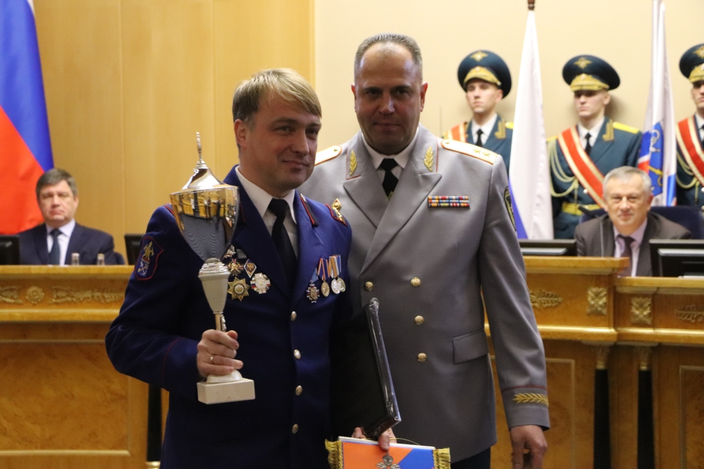 На церемонии подведения итогов работы Ведомства за добросовестное исполнение служебных обязанностей от имени губернатора и председателя Законодательного Собрания Ленинградской области были объявлены благодарности лучшим сотрудникам. Ведомственные награды МЧС России, дипломы, грамоты и памятные кубки вручил начальник Главного управления генерал-лейтенант внутренней службы Евгений Григорьевич Дейнека.