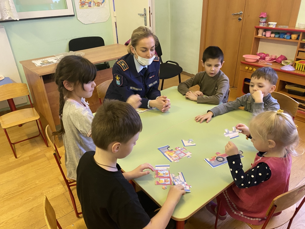 Чтобы детям было проще запомнить столь сложную тему, сотрудники пожарных ведомств приготовили несколько практических игр – сбор пазлов, соединение картинок, с которыми ребята великолепно справились!