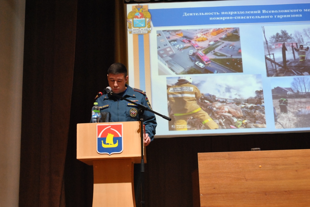 Расширенное совещание проходило в Культурно-досуговом центре «Южный», куда был приглашен личный состав подразделений 15 пожарно-спасательного отряда, отряда государственной противопожарной службы ГКУ «Леноблпожспас», сотрудники ОНД и ПР.